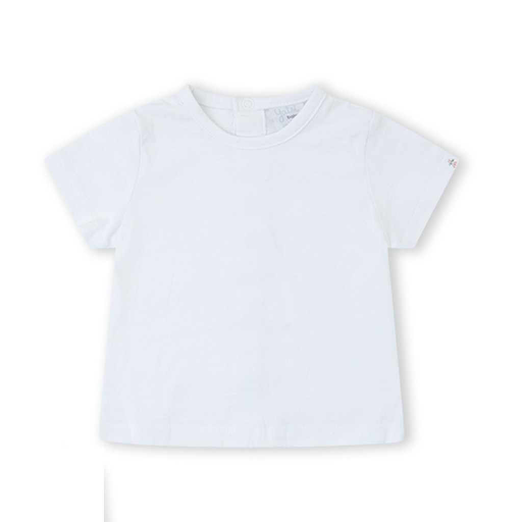 Conjunto para bebé confeccionado en algodón que combina peto estampado con bolsillos y camiseta de manga corta en color blanco a contraste. De la marca Yatsi.