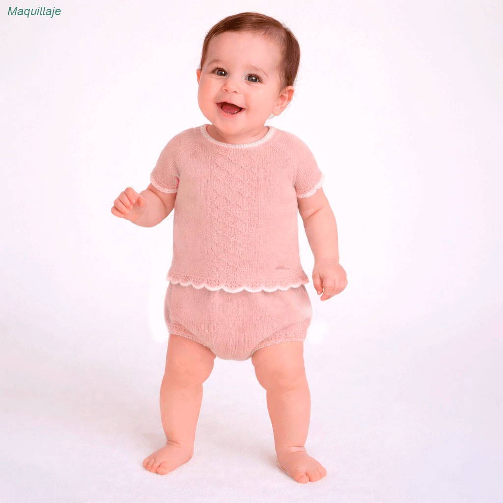 Conjunto de bebé de manga corta confeccionado en tejido de punto compuesto por jersicito y braga cubrepañal.