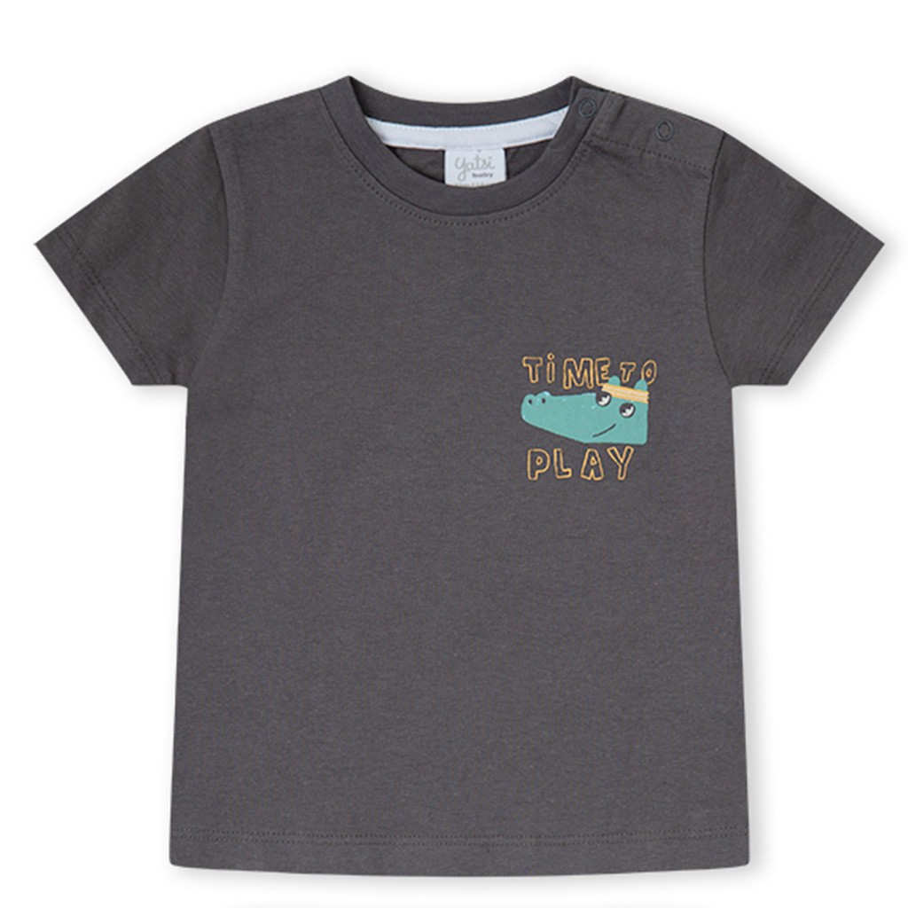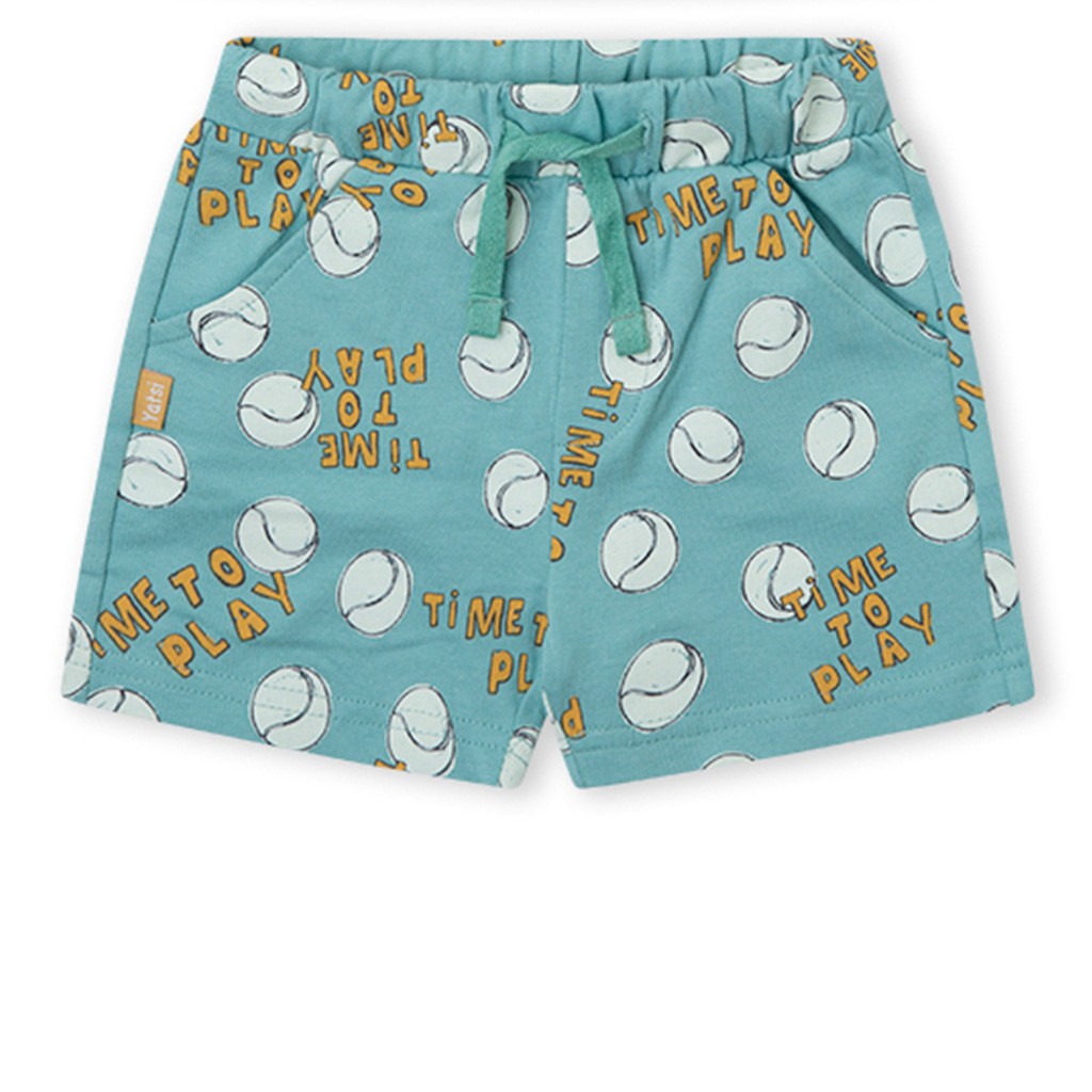 Conjunto de algodón para bebé compuesto por camiseta de manga corta y pantalón corto estampado con bolsillos y cordón ajustable en cintura. De la marca Yatsi.