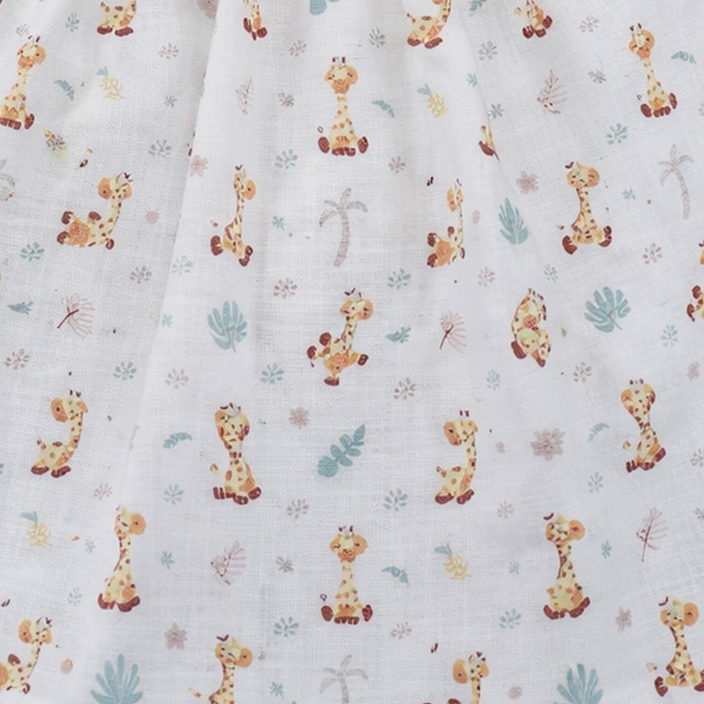 Vestido de bebé sin mangas y confeccionado en tejido estampado con cuello de punto y detalle de lacito, con braguita a juego.