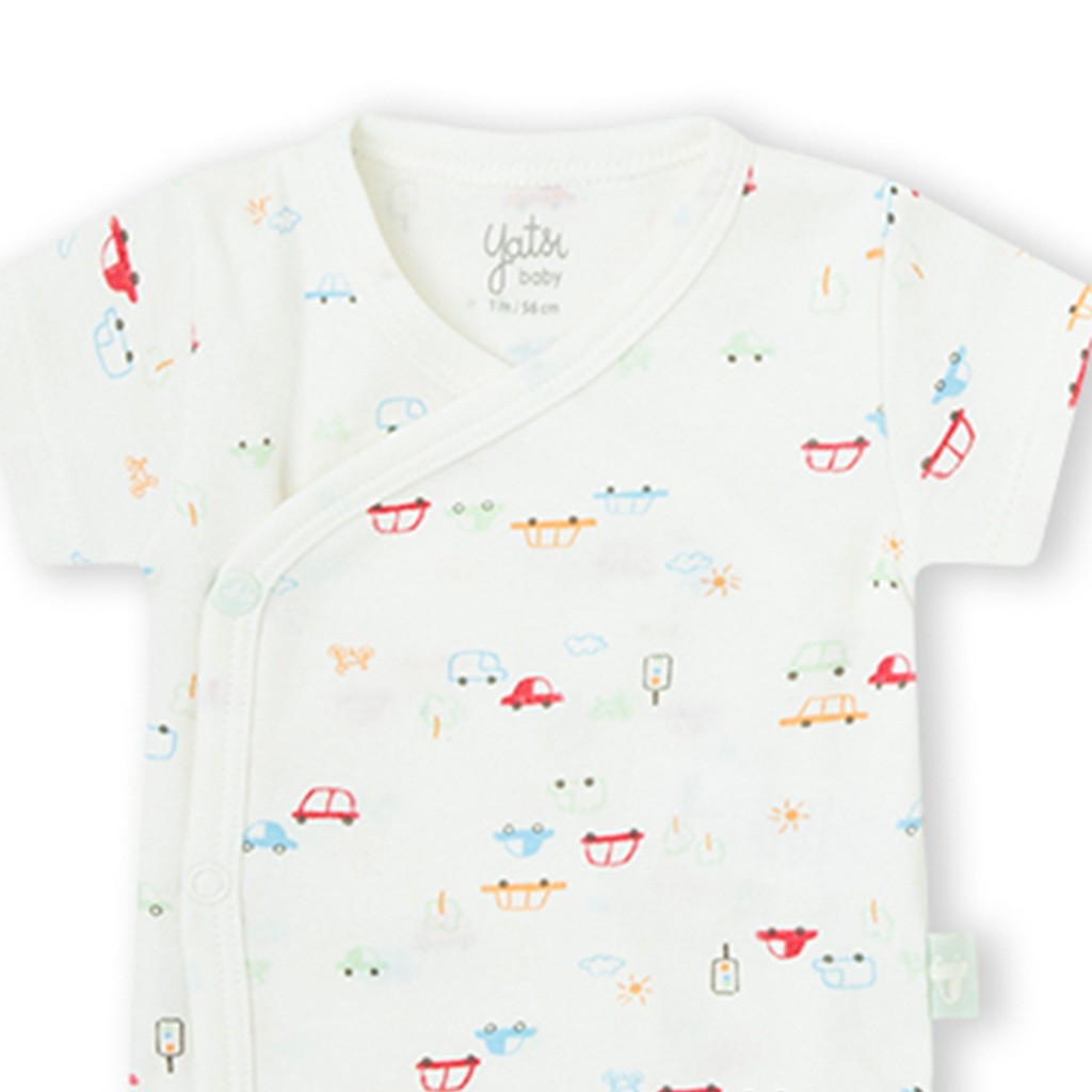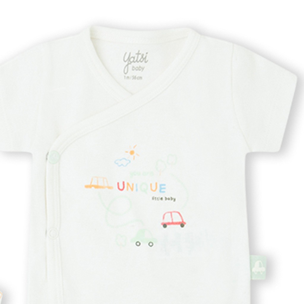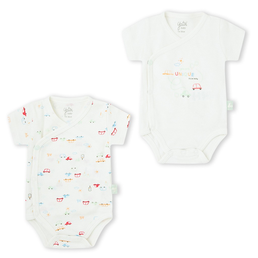 Pack de dos bodies de manga corta confeccionado en algodón que combina uno estampado y otro liso con dibujo en el pecho, abierto en el lateral con botones automáticos. De la marca Yatsi.