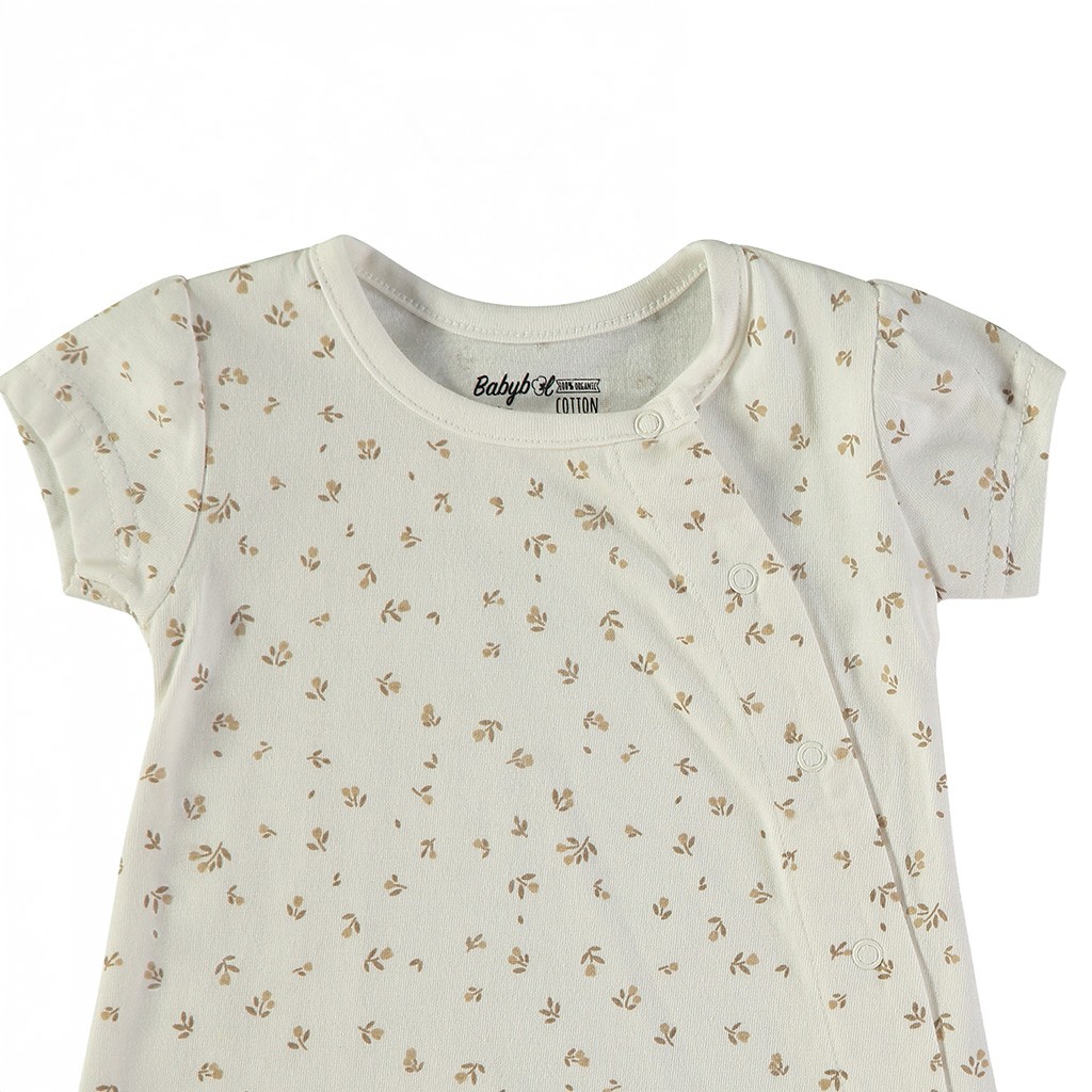 Pelele de bebé confeccionado en tejido de algodón estampado, de manga corta con cierre lateral de corchetes. De la marca Babybol.