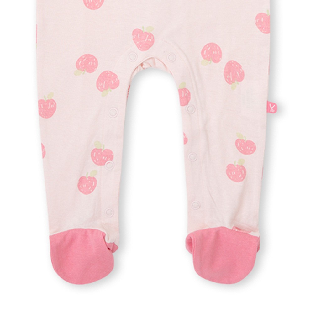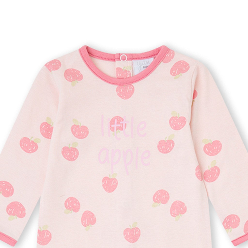 Pelele para bebé de tejido de algodón y manga larga con apertura de corchetes en la espalda y en color rosa estampado. Se envía en caja. De la marca Yatsi.