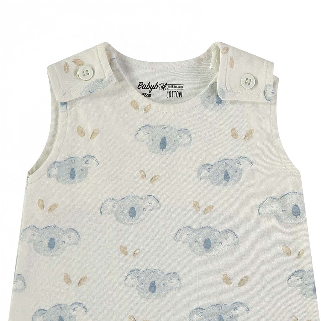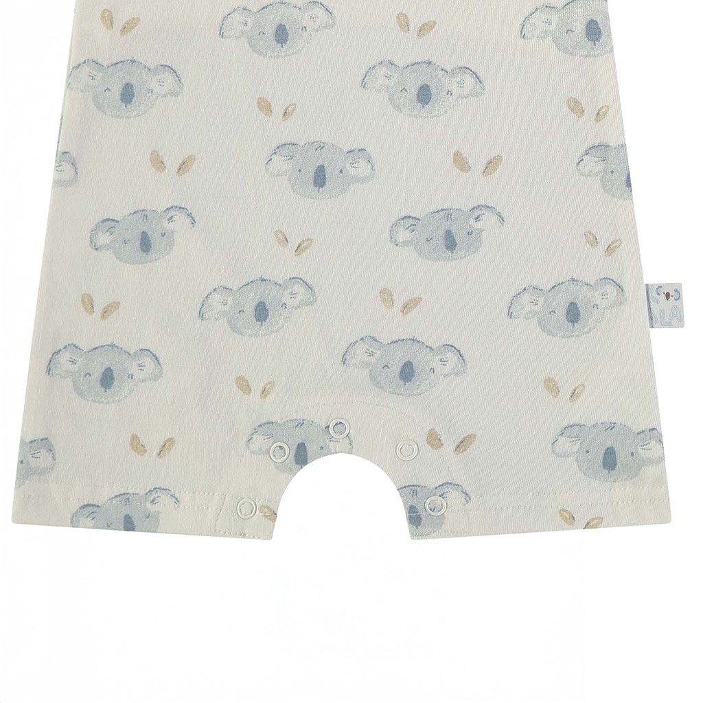 Pelele corto para bebé en tejido de algodón 100% estampado con dibujo de Koalas, de tirante ancho con boton en el hombre. Marca Babybol.