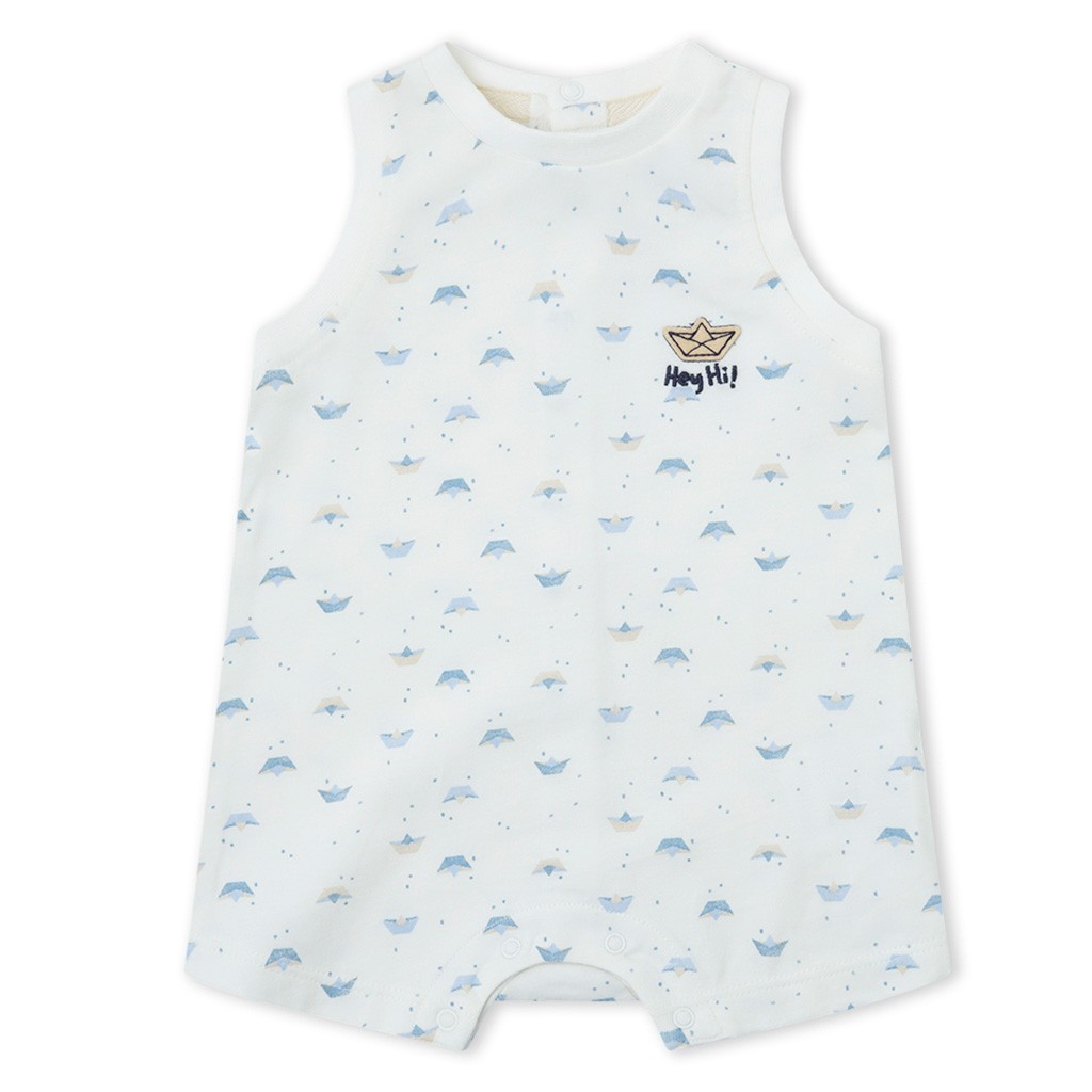 Pijama de bebé de cuerpo entero con tirantes y cierre de corchetes en la espalda confeccionado en tejido de algodón estampado. Se envía en caja. De la marca Yatsi.