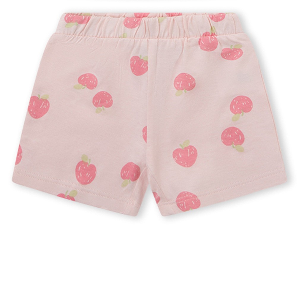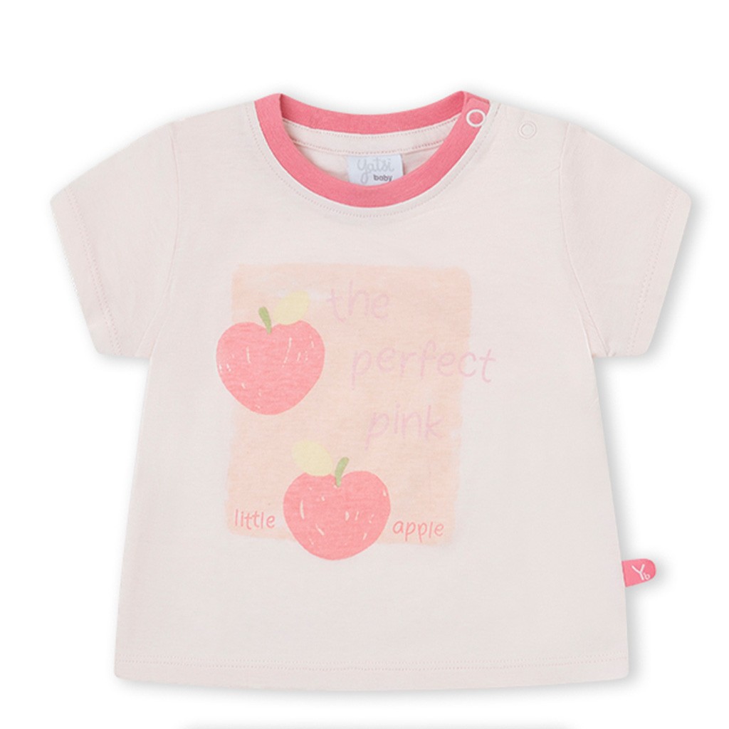 Pijama para bebé que combina camiseta de manga corta con dibujo delantero y cierre en el cuello con corchetes y pantalón corto estampado. Confeccinado en algodón. De la marca Yatsi. Presentado en caja.