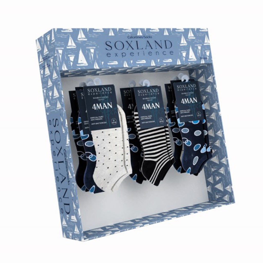 Calcetín invisible hombre estampado expositor 18 Soxland