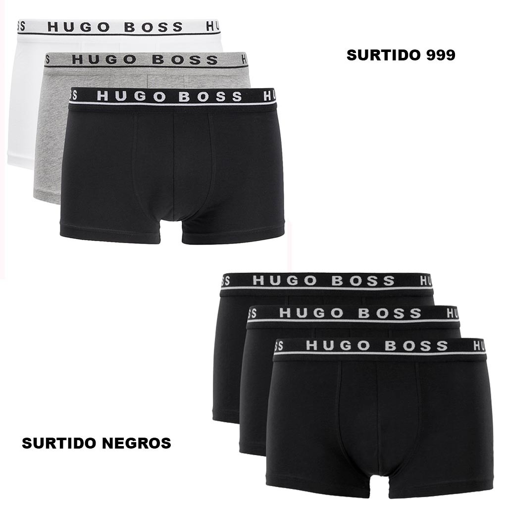 Pack de 3 bóxer para Hombre de Hugo Boss con cintura de goma vista personalizada con la marca. Presentado en blister de 3 unidades.