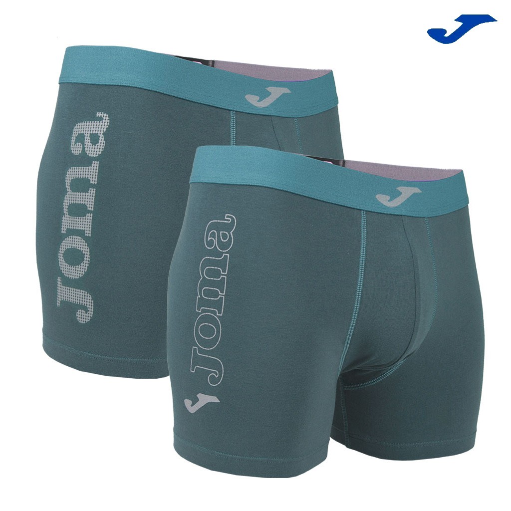 Pack de 2 bóxer de algodón bielástico con cintura de goma vista con logo J. EL pack se compone de 2 boxer con dos diferentes logos de JOMA estampados en el lateral. Se envia en blister para colgar.