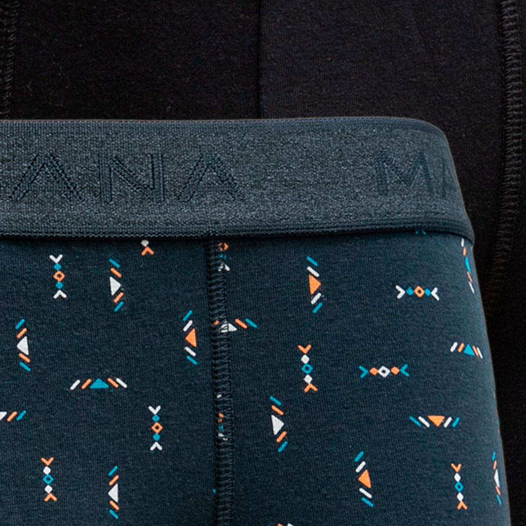 Pack de 2 bóxer para hombre confeccionados en modal-algodón extra soft y elástico. Con cintura de goma vista muy cómoda y suave. Se envia en blister de carton para colgar con un boxer estampado con motivos geometricos y otro liso.