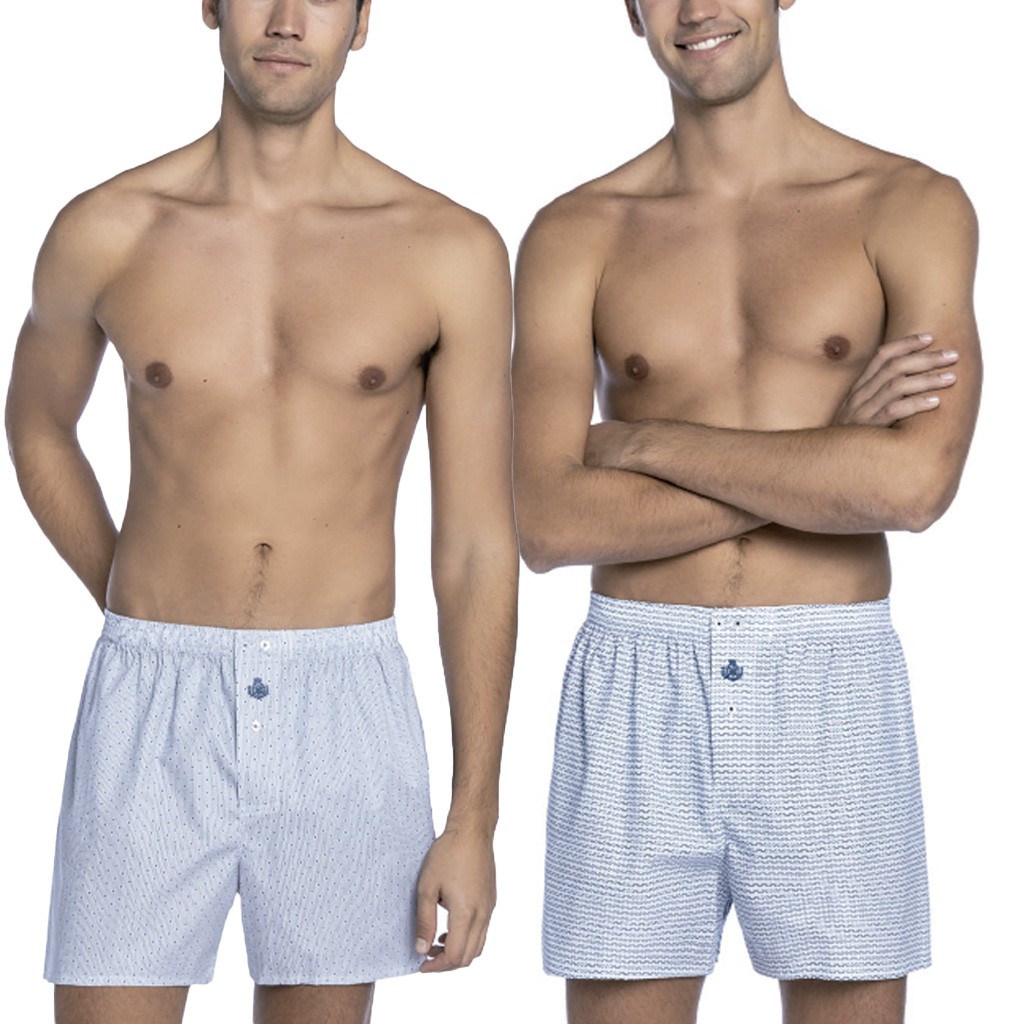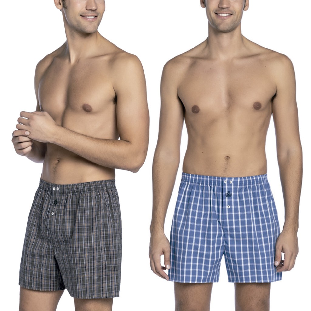 Bóxer hombre tela, abierto, con botones, pieza trasera tipo americano. En caja de 6 unidades de diferentes modelos surtidos que cambian con cada capaña y pueden ser diferentes alos de la imagen. Máxima calidad.