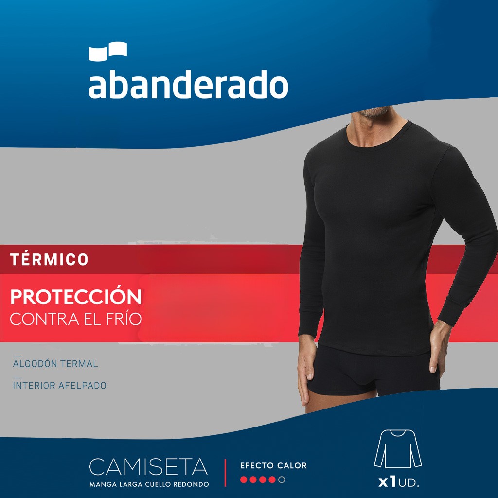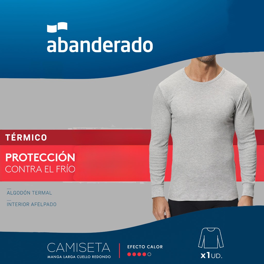 Camiseta termal de Abanderado para hombre de manga larga con cuello redondo. Confeccionada en tejido100 % Algodón de punto liso interlock con interior afelpado efecto calor. Ahora tambien disponible en color negro y gris vigore