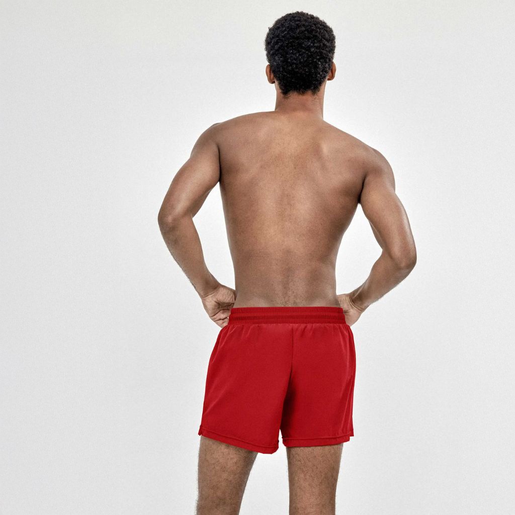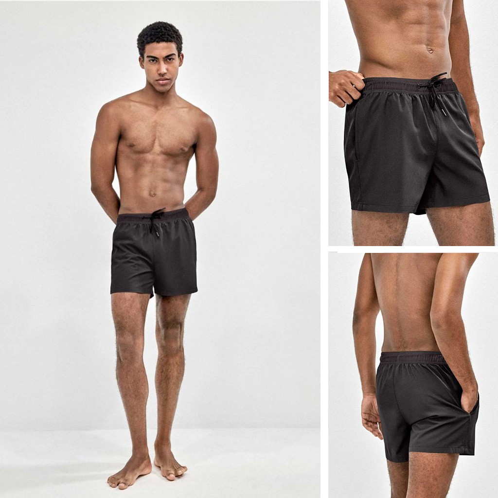 Bañador corto de hombre en color liso con cintura ajustable y bolsillos laterales.