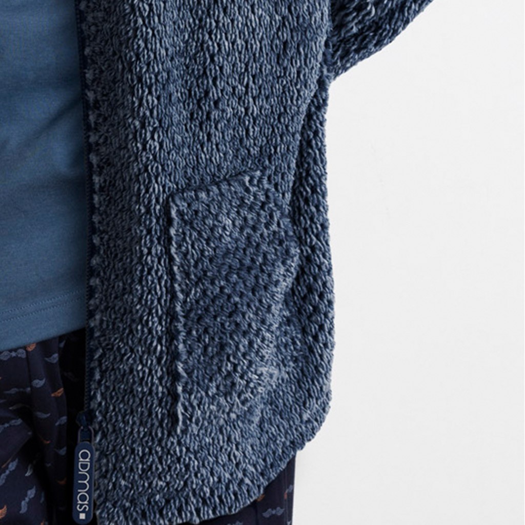 Batín corto de hombre con cierre de cremallera y bolsillos, confeccionado en tejido de pelo suave, de la marca Admas. Presentado en caja.