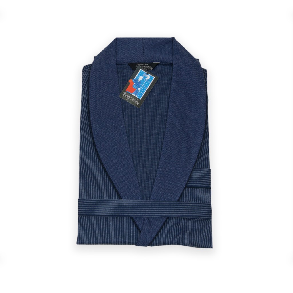 Batín largo cruzado con precios tejido de rayas marino de tacto suave y cálido.