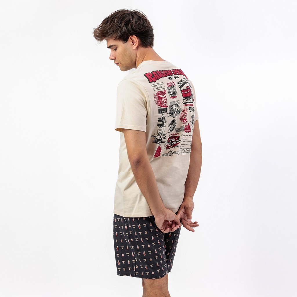 Pijama de algodón para hombre compuesto por camiseta de manga corta con dibujo impreso en la espalda y pantalón corto con estampado a juego. Presentado en caja.