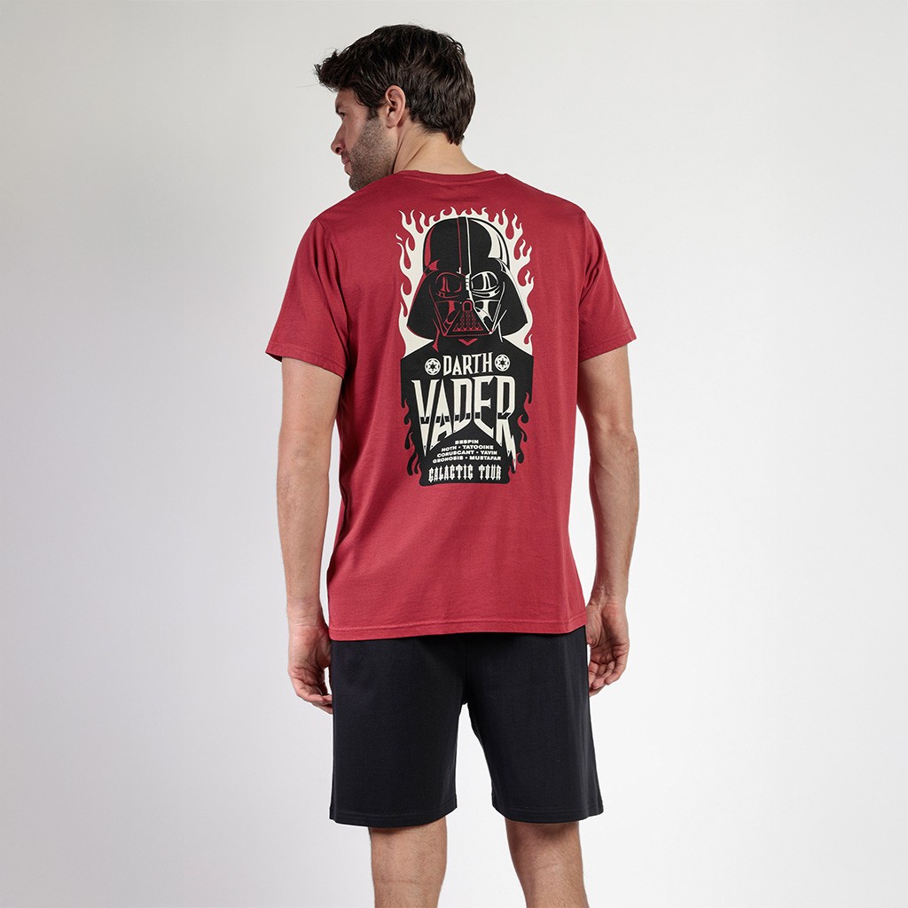 Pijama de hombre confeccionado en algodón con camiseta de manga corta con dibujo en la espalda y pantalón corto en color a contraste. Presentado en caja con diseño de Star War.