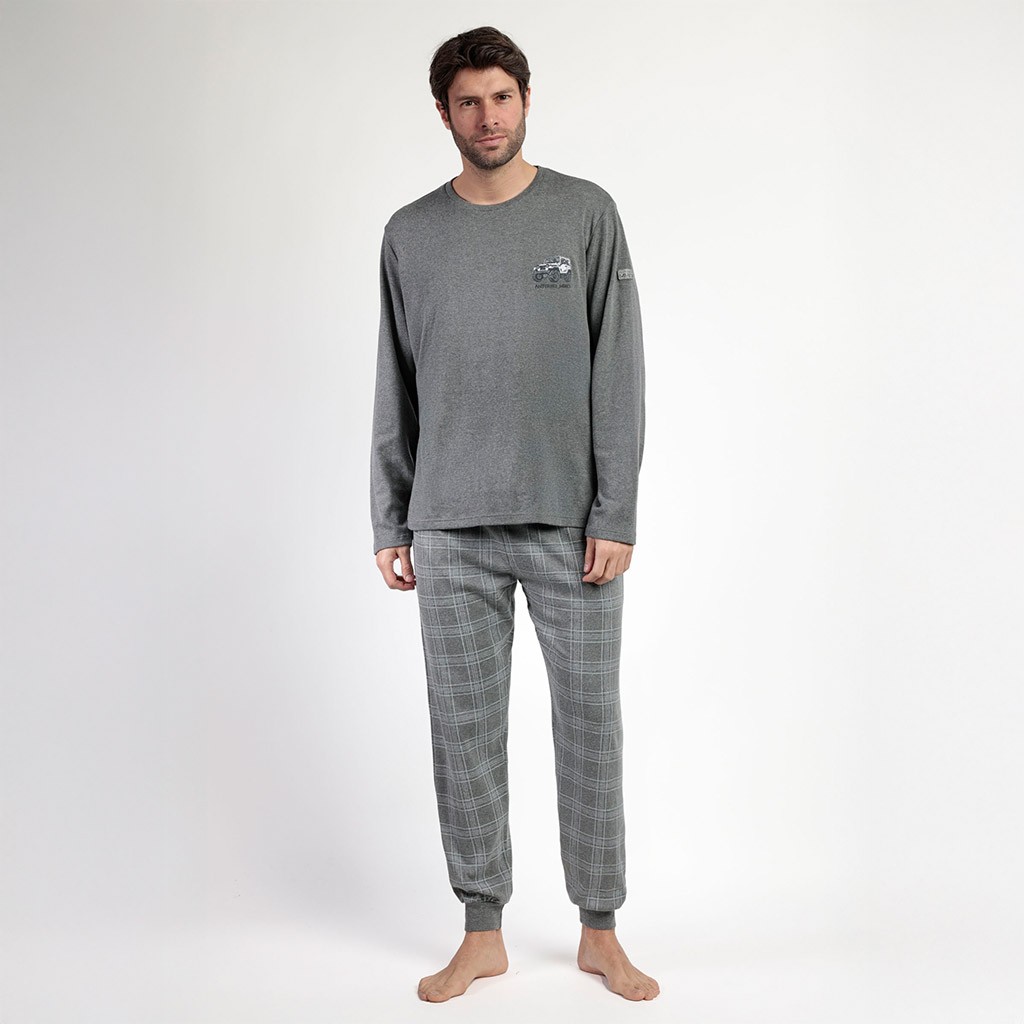 Pijama hombre gris pantalón cuadros Antonio Miro