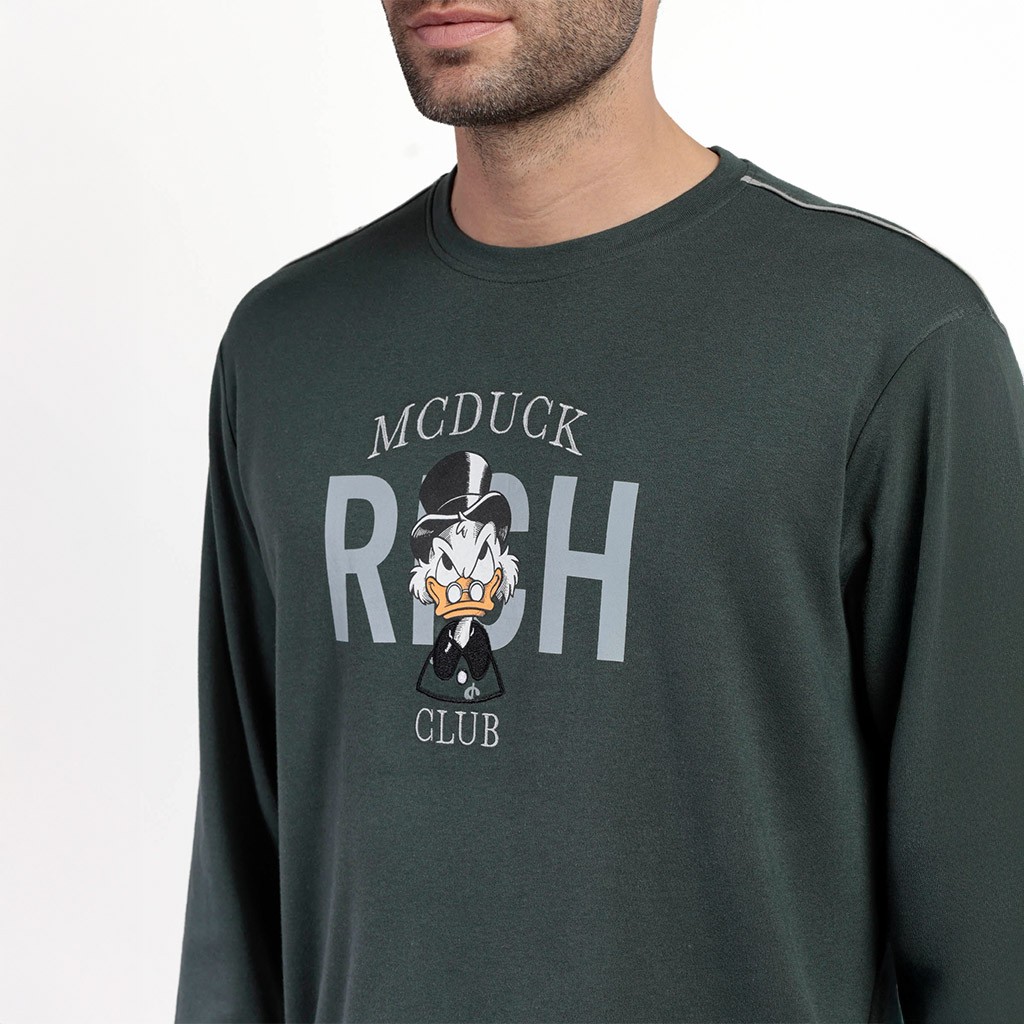 Pijama de hombre en tejido de algodón con camiseta de manga larga y dibujo de McDuck que combina con pantalón largo estampado. Presentado en caja a juego.