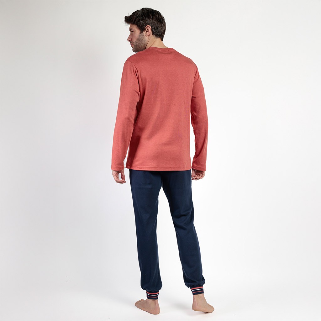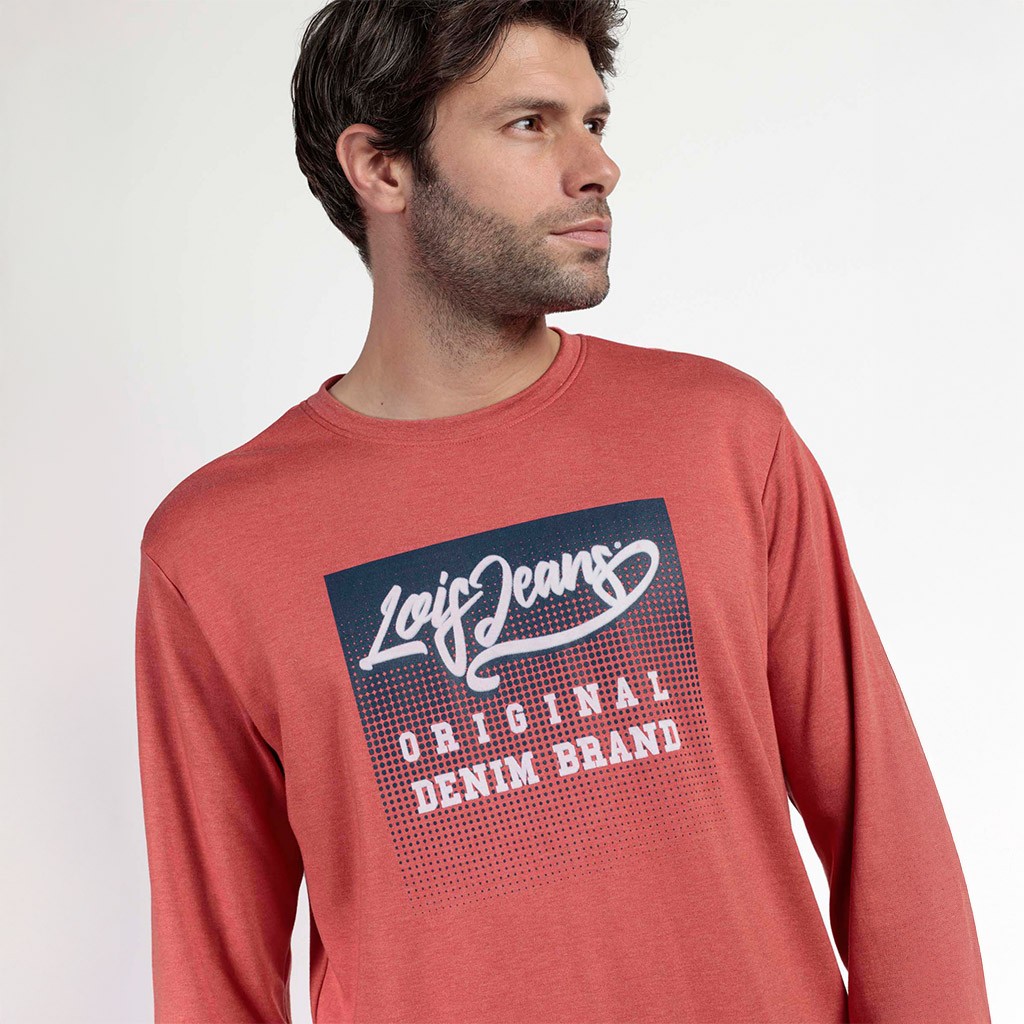 Pijama de hombre compuesto por camiseta de manga larga con dibujo delantero de Lois y pantalón largo con bolsillos y puños elásticos. Presentado en caja con diseño de la marca.