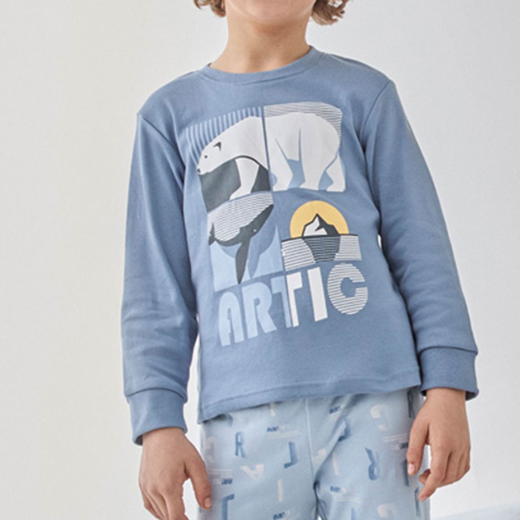 Pijama infantil algodón de manga larga azul artic Tobogan
