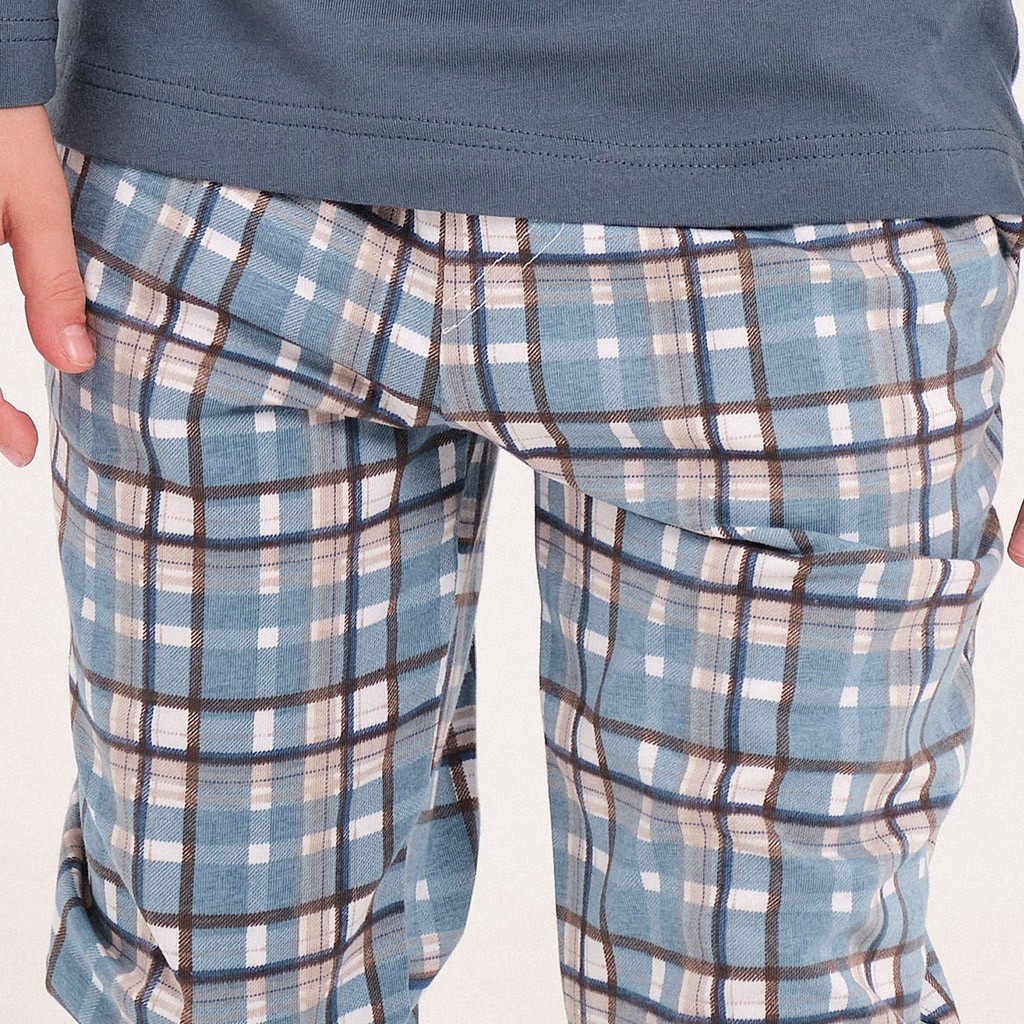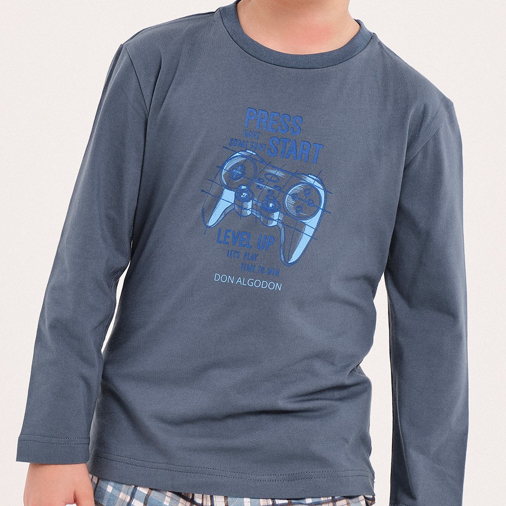 Pijama juvenil de la marca Don algodon, compuesto por camiseta de manga larga con dibujo delantero y pantalón largo de cuadros . Presentado en caja.