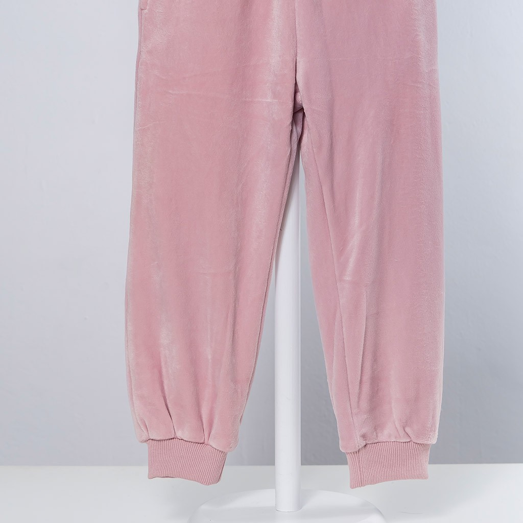 Pijama largo de niña que combina camiseta de rayas y pantalón en color liso con puños, de la marca Privata. Presentado en cajita.