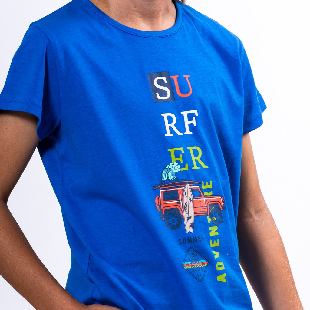 Pijama de niño en tejido de algodón con camiseta de manga corta impresa en delantero y pantalón corto estampado con bolsillos. Presentado en caja.