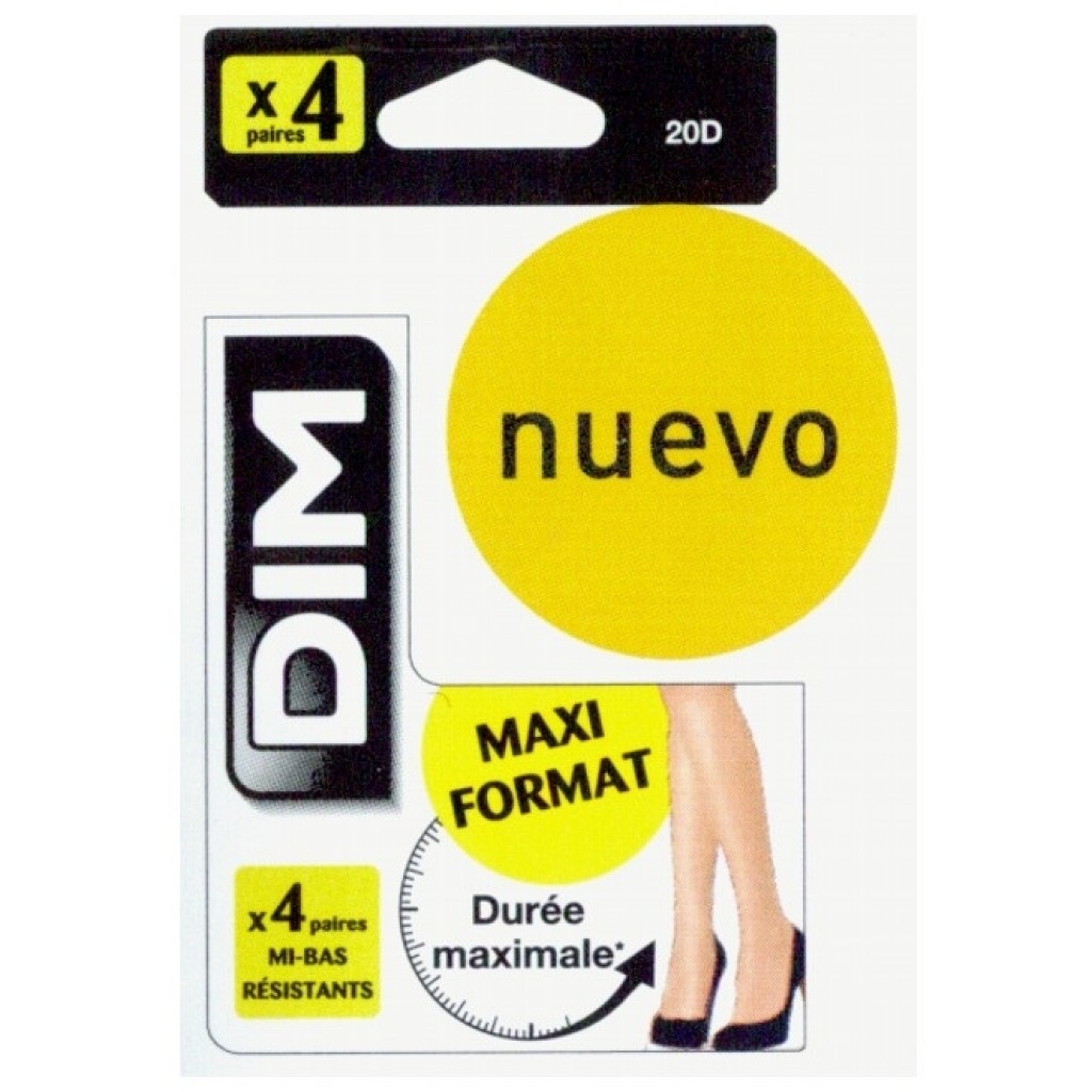 Pack 4 pares mini medias de 20 Denier de la línea Essentiel de Dim. Suavidad y elasticidad, aspecto mate, elástico confort, puntera reforzada con stop malla