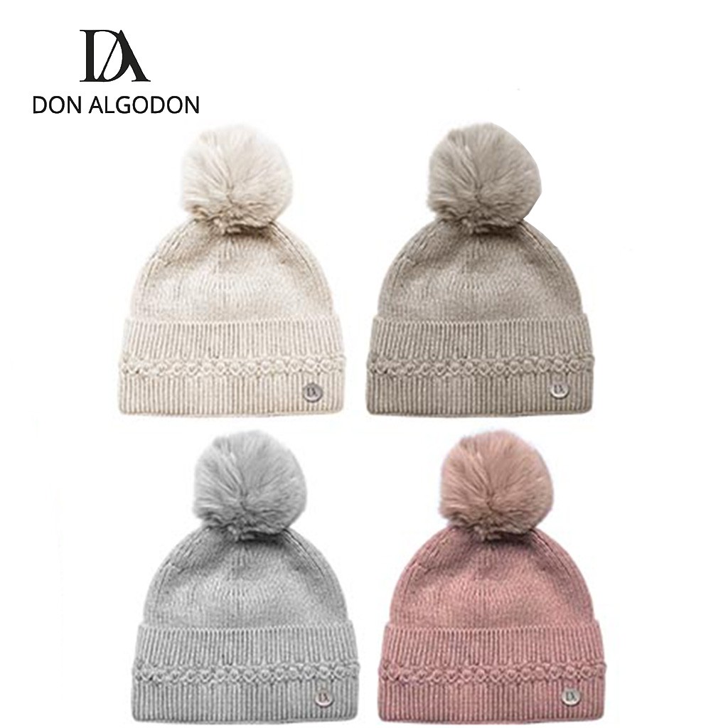 Gorros de mujer de tejido cálido con suave pompom y detalle marca en el lateral. Se incluye una bolsa personalizada con la marca para cada gorro a modo de bolsa de regalo. Lotes de 6 surtidos de colores