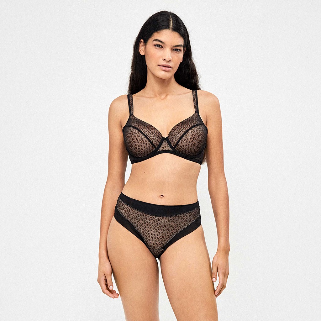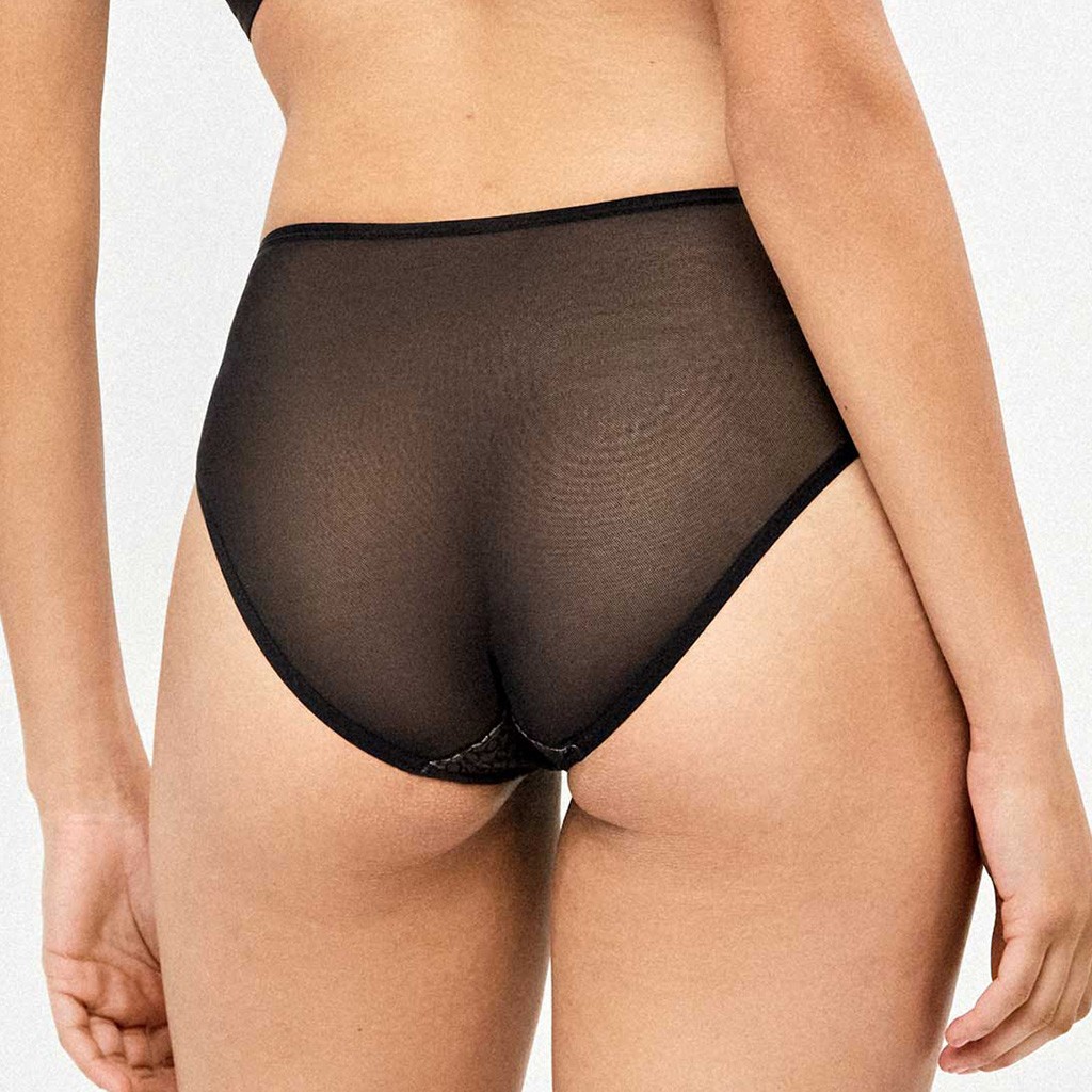 Braga alta de mujer de microfifra con refuerzo de abdomen y detalles de tul bordado con el lodo g de GISELA.