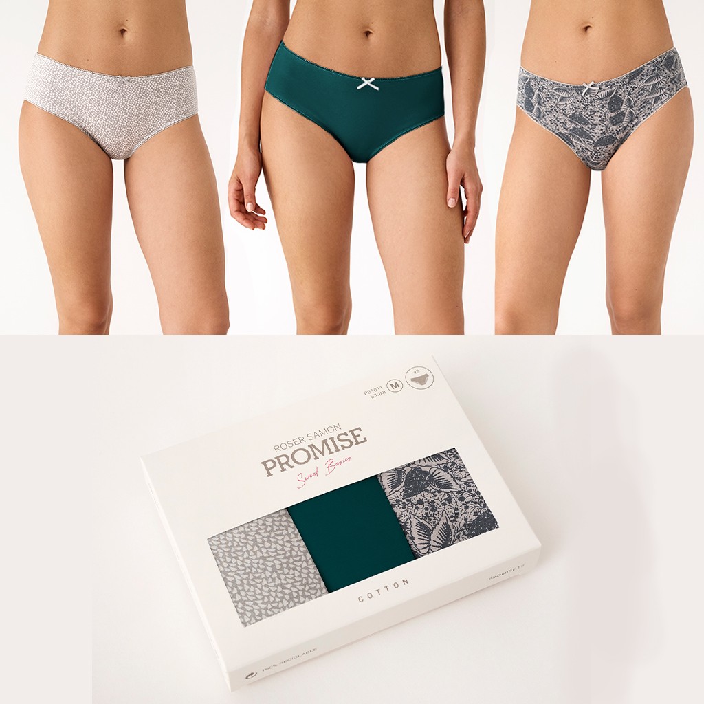 Nuevo Expositor de 12 pack de 3 bragas midi de algodón elástico en 3 diferentes combinaciones con forro interior de algodón 100%. Cada expositor contiene 12 pack surtidosen esta proporcion: 3 de la talla M, 6 de la talla L y 3 de la talla XL.