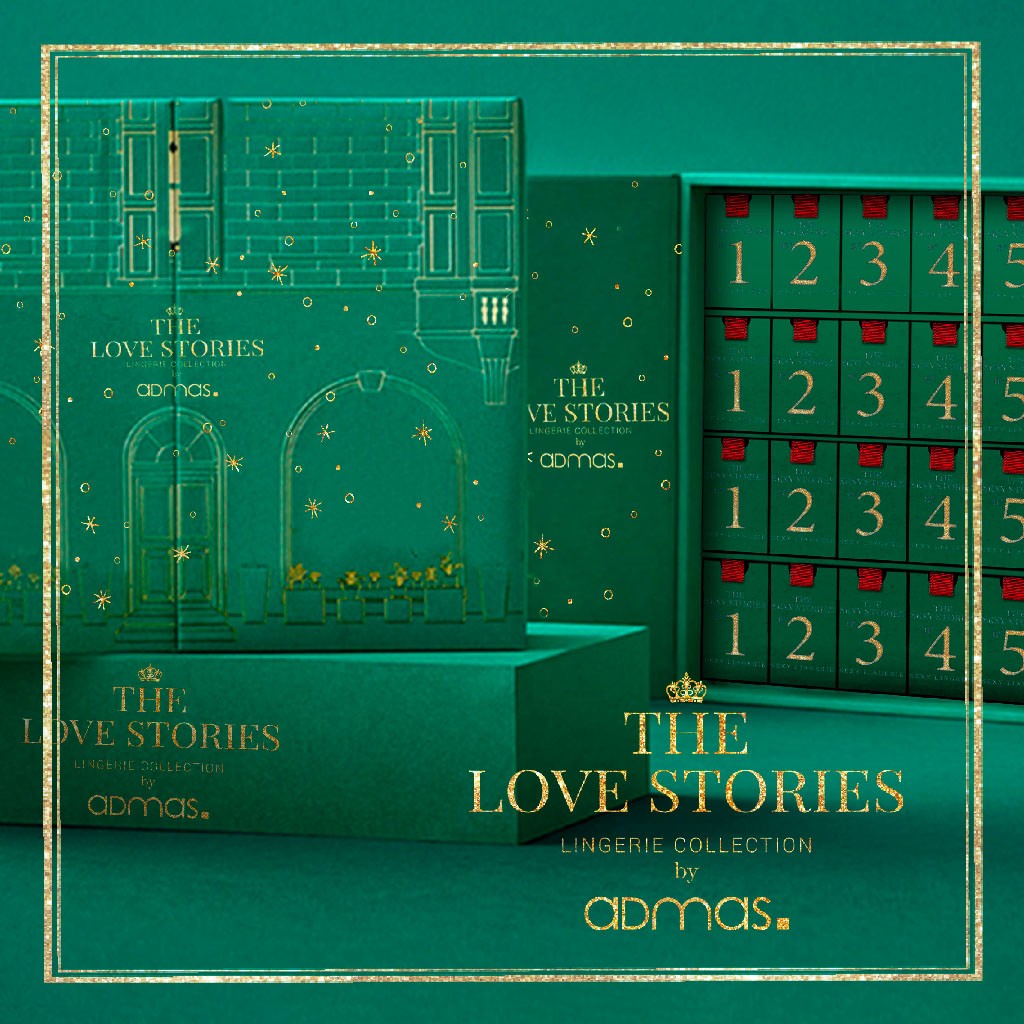 Expositor casita, de la línea The Love Stories, que contiene bragas y tangas en color rojo, con encaje. Contiene 24 unidades repartidas en bragas y tangas y en tallas M y L. Presentadas en cajitas individuales.