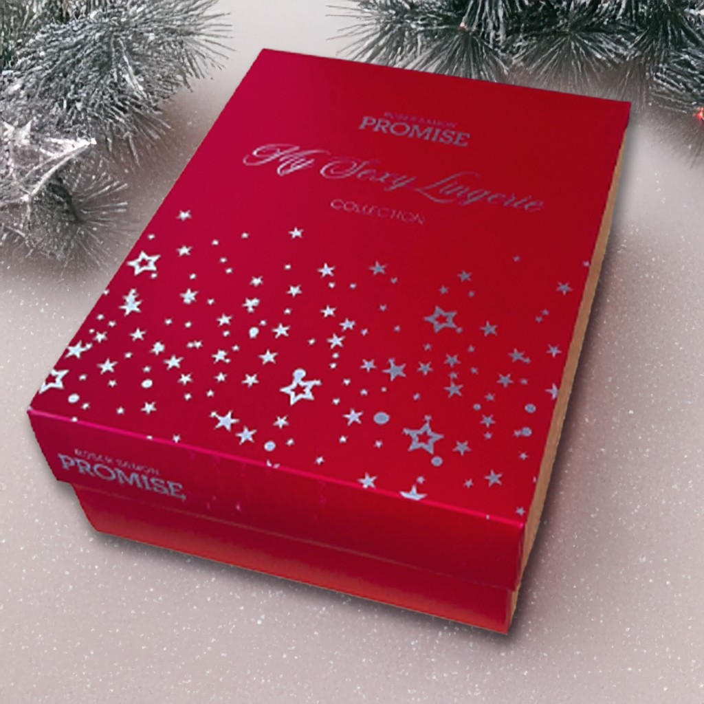 Conjunto de lencería para mujer con sujetador rojo push up y braga brasileña de encaje rojo a juego. Se envia en una bonita caja ideal para regalar.