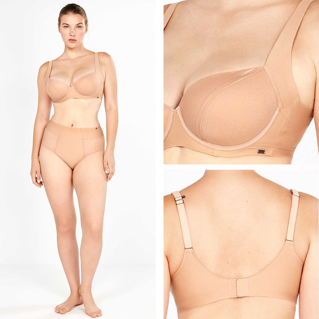 Sujetador capacidad con aros y con ligero foam que realza y define la silueta. Su diseño lateral minimiza las irregularidades del costado. Tirantes regulables con opción de espalda cruzada. Acabados termofusionados que no marcan.