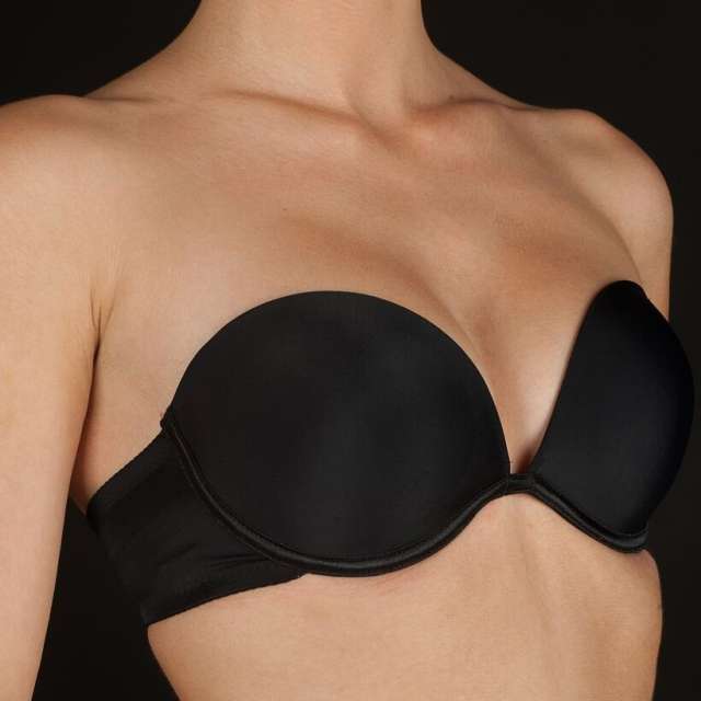 Sujetador con aros y copa de relleno escotada, sin tirantes, fabricado en cómoda microfibra . Incluye doble juego de tirantes desmontables. Copa B.