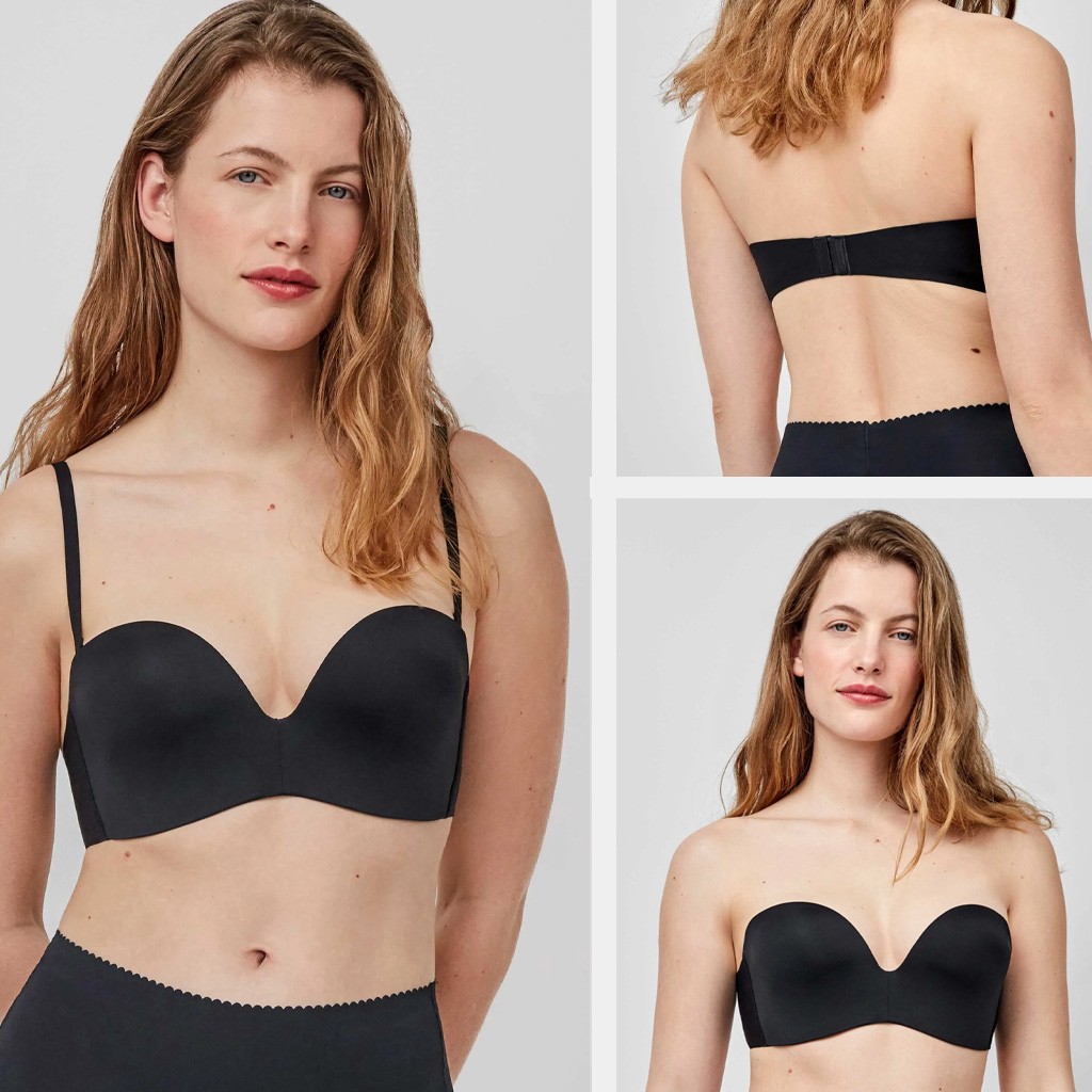 Sujetador de mujer perfecto para llevar sin tirantes gracias a sus nuevos a ros de policarbonato en forma de arco que proporcionan un perfecto agarre. Incluye bandas de silicona extrafinas que no oprimen y espalda acabada en corte láser que no marca.