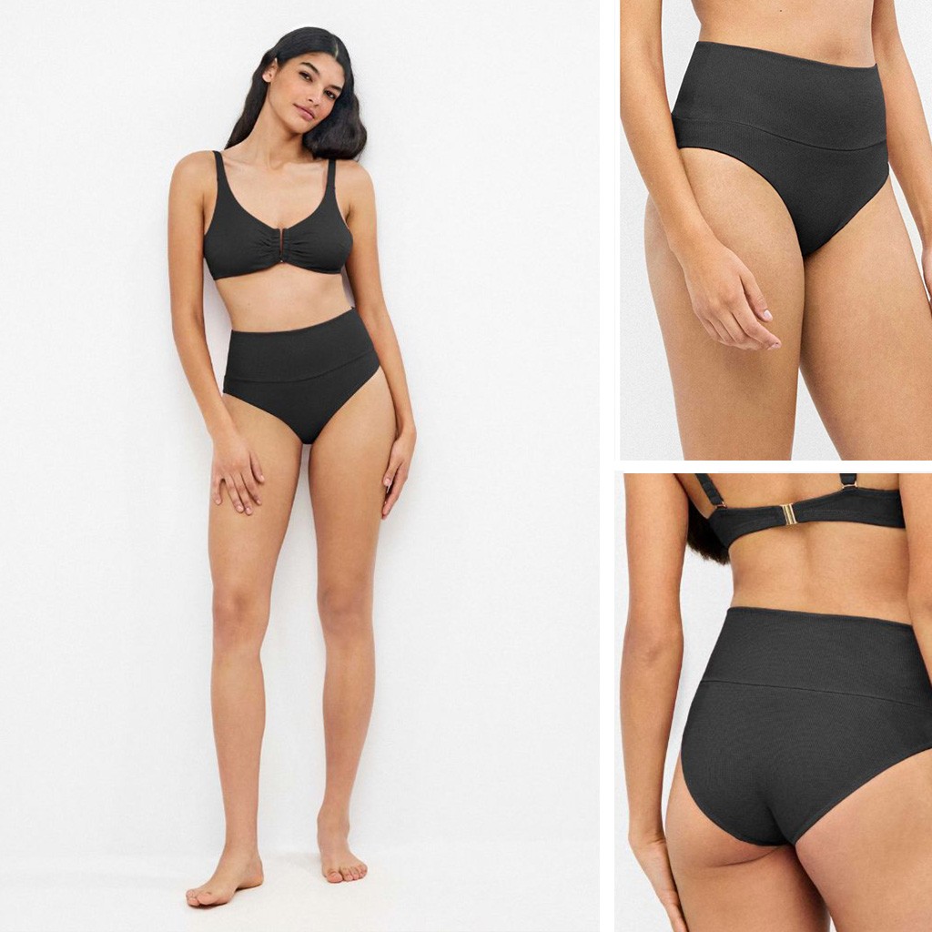 Braga alta de baño para mujer con cintura de doble tejido en color liso. Combina con 2/30404T.