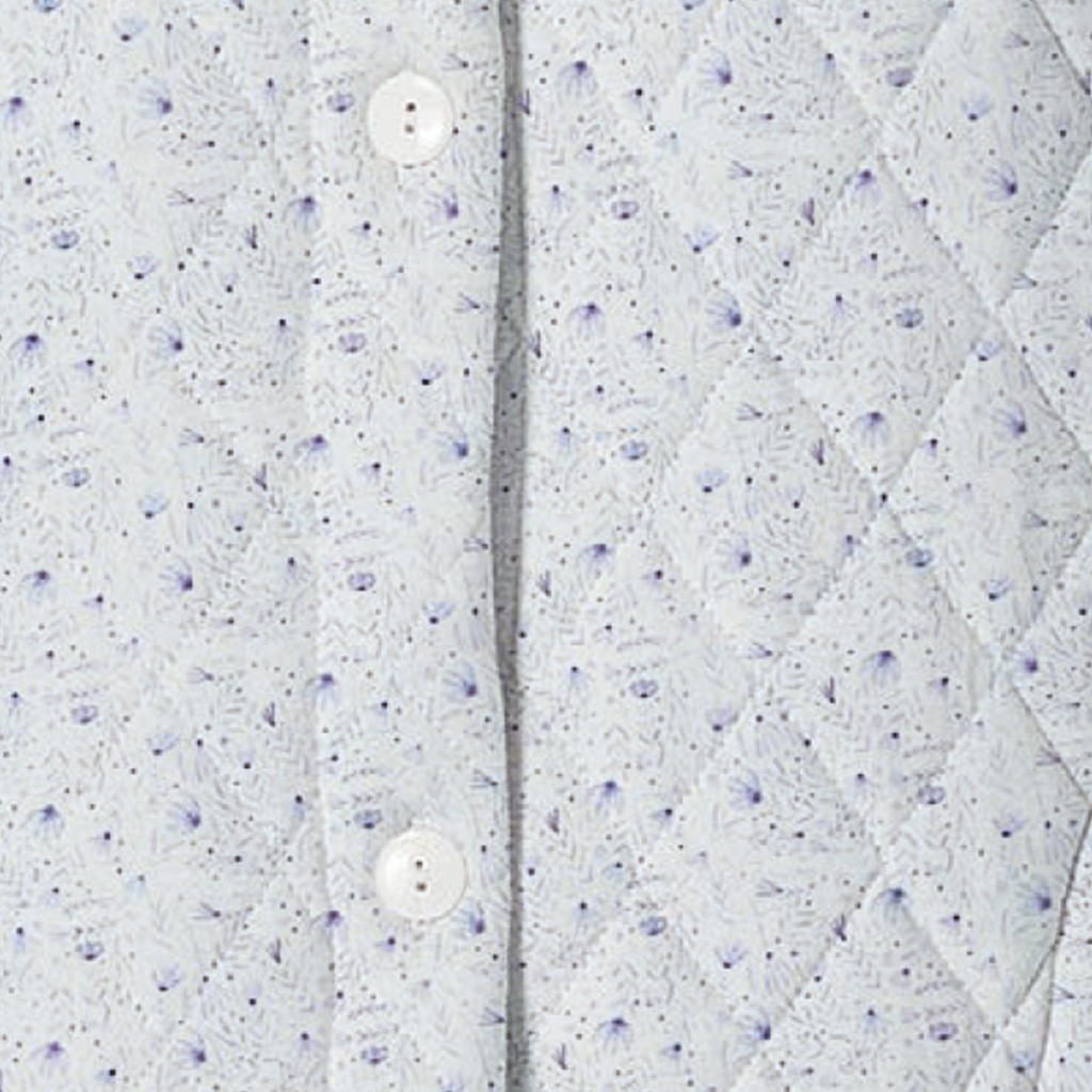 Bata larga de mujer en tejido acolchado con apertura de botones y bolsillos laterales.