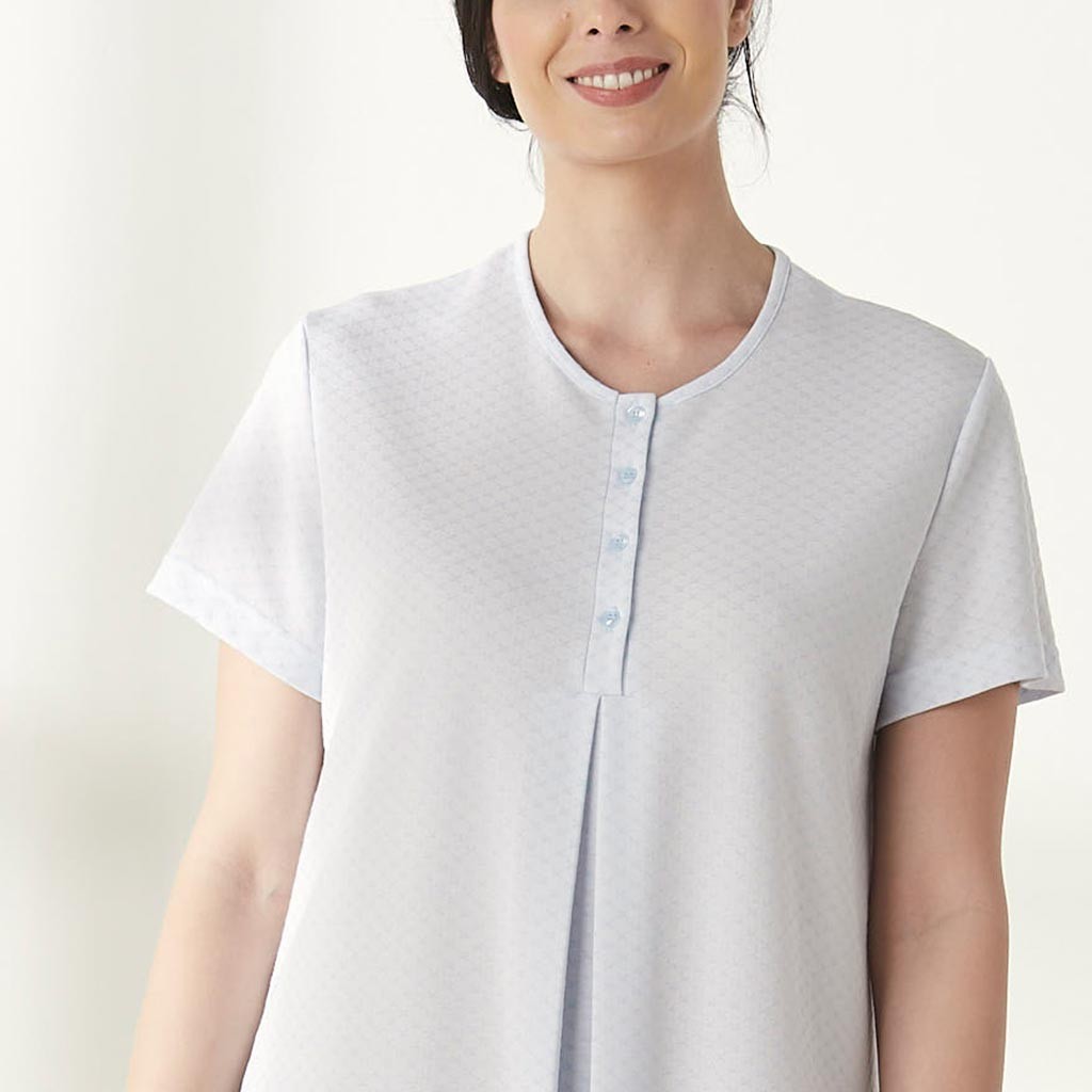 Camisón de manga corta para mujer, de patrón largo con cuello de botones y pliegue para mayor amplitud, de la marca Belty.