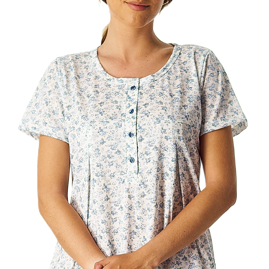Camisón de mujer confeccionado en tejido de algodón de largo especial y manga corta con cuello de bototones. Presentado en caja.