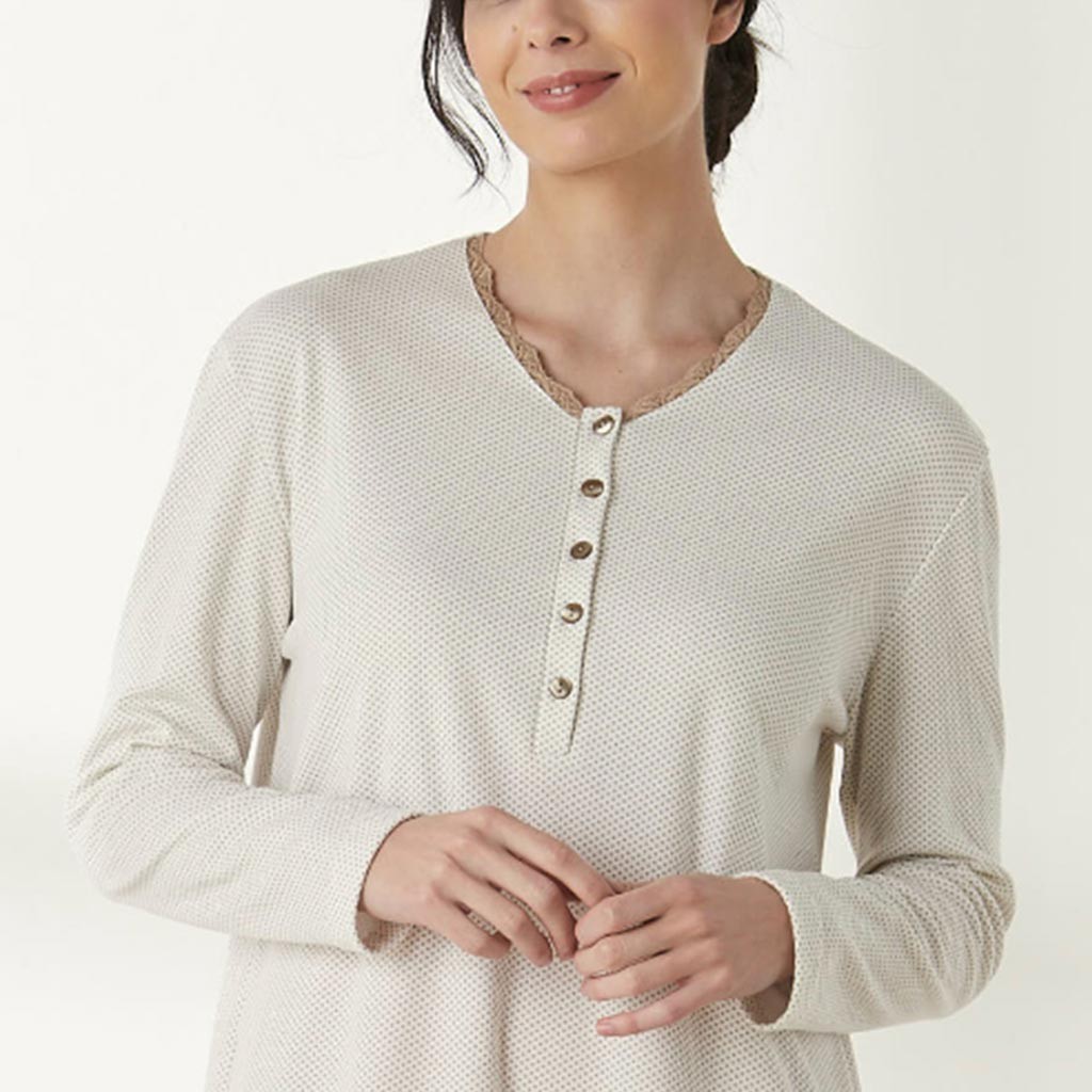 Camisón de manga larga para mujer en color liso y de patrón largo con cuello de botones. De la marca Belty.