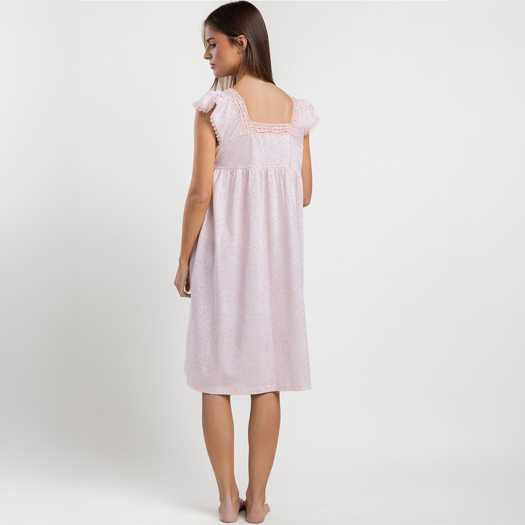 Camisón para mujer de manga corta con volante confeccionado en algodón estampado con escote cuadrado con puntilla. Presentación en caja.