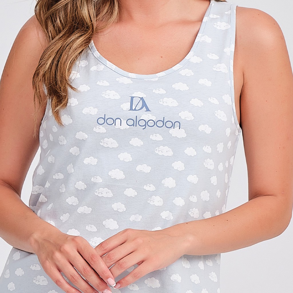 Camisón corto para mujer, de hombreras en tejido de algodón con estampado de nubes. Presentado en caja.