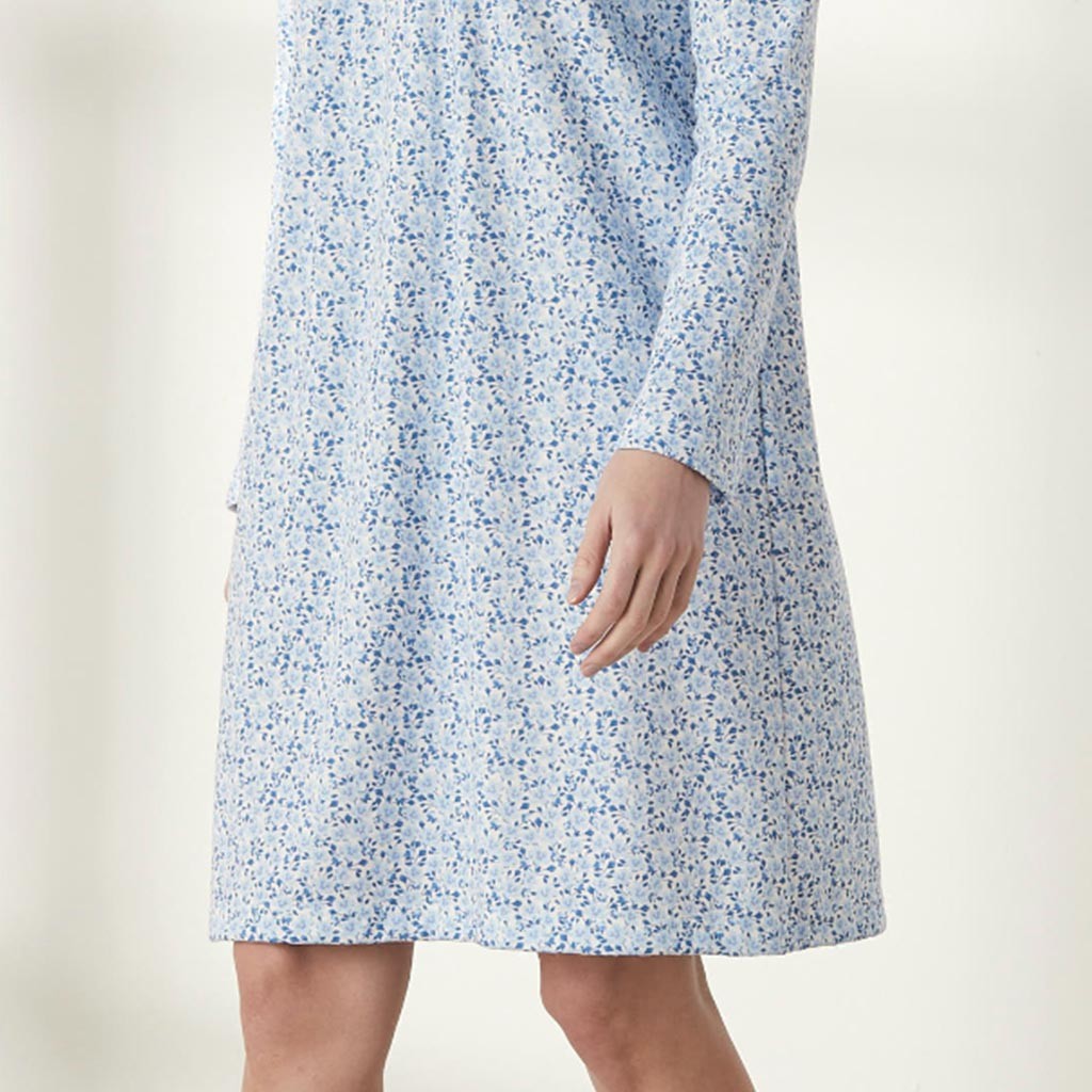 Camisón largo de mujer con cuello de botones confeccionado en tejido estampado de florecitas y de manga larga. Marca Belty.