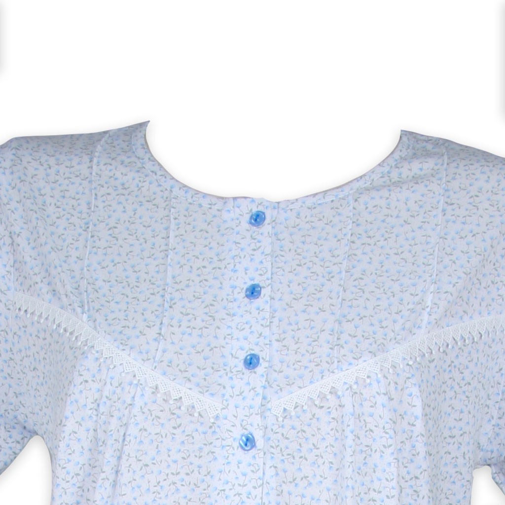 Camisón para mujer, de manga corta con canesú y botones. Prenda confeccionada en algodón con estampado de flores. Disponible bata a juego. Presentado en caja.