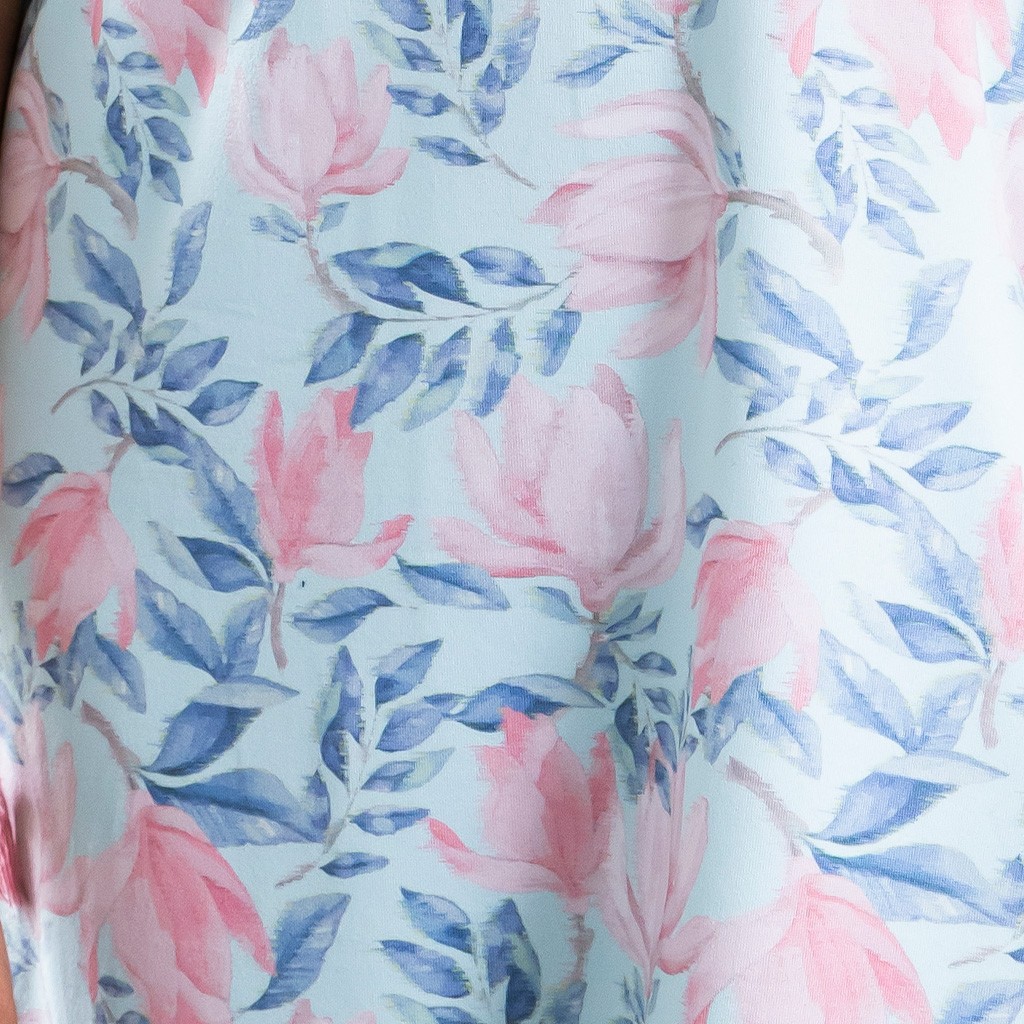 Camison mujer de microfibra elástica de tirantes finos y rematado en fina puntilla en el cuello de pico. Tejido estampado floral.