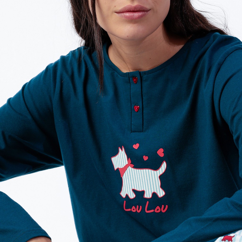 Pijama largo mujer algodón perrito Lou Lou Admas