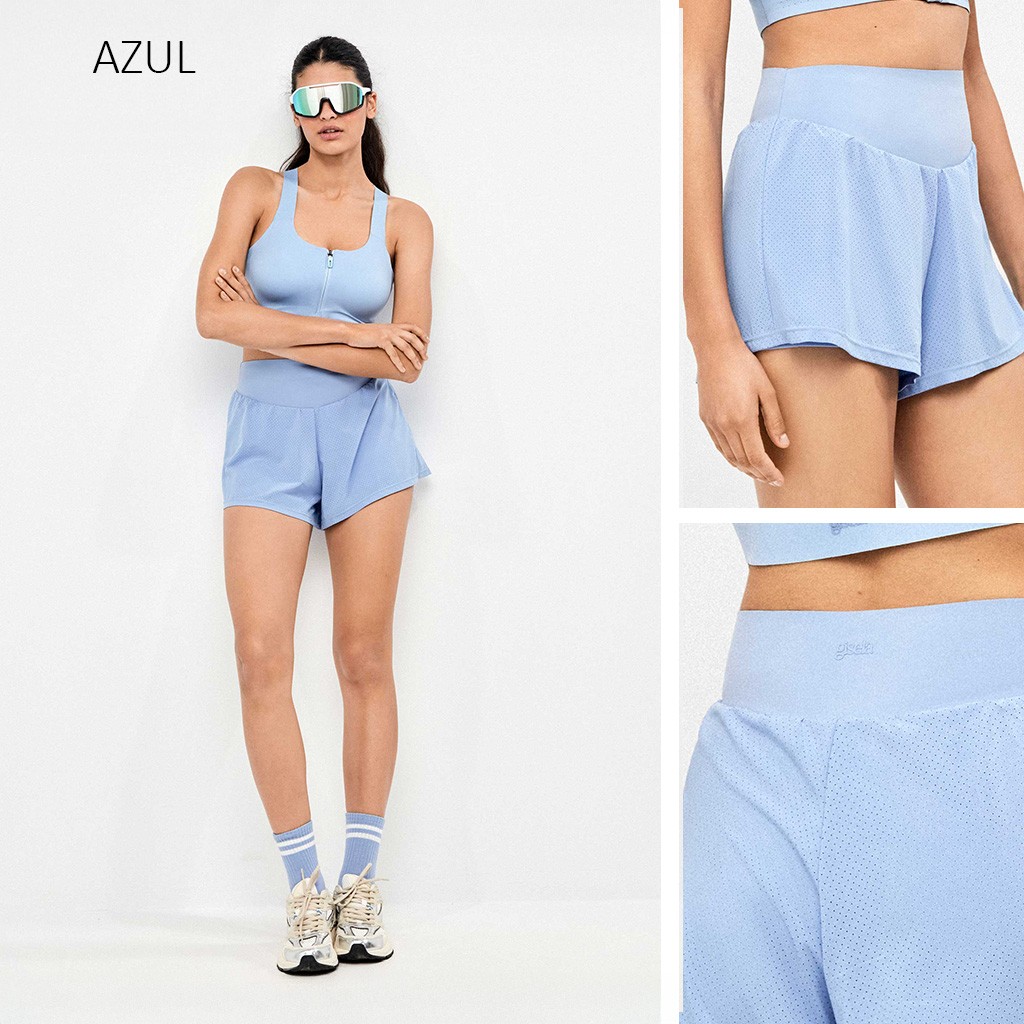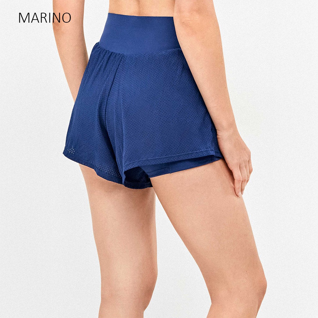 Pantalón deportivo corto con short interior con bolsillo y tejido fluido y microperforado en exterior, cintura alta siliconada para mayor sujeción.