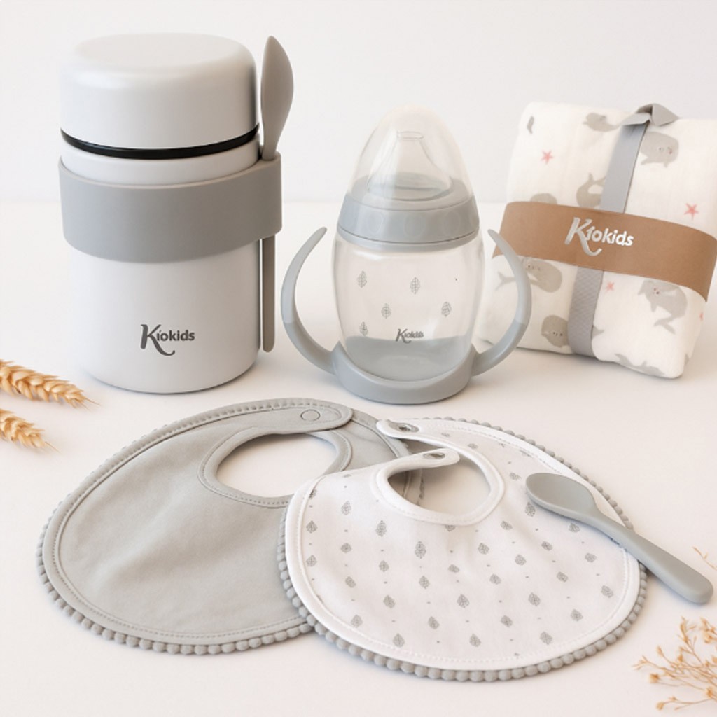 Pack de 3 gasa de bebe en saquito de regalo diseño ballenita gris de Kiokids. Confeccionada en 70 % Bambú y 30% Algodón , son antialergicas y termoclímaticas ideal para verano e invierno. Set de 3 surtidas medidas 70 x 70